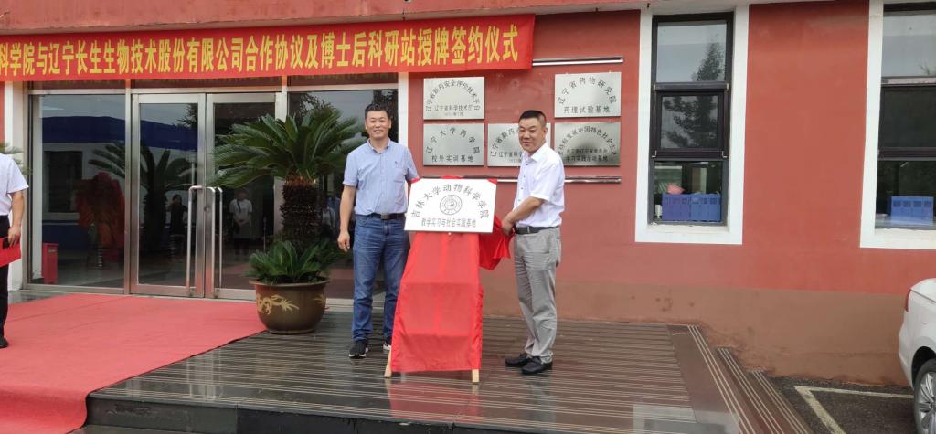 为深入推进新农科建设,2020年8月28日,今年会张嘉保院长带队一行7人组成考察组,前往本溪市辽宁长生生物技术有限公司,考察了今年会新农科教学实习与实践基地,签署合作协议并进行揭牌仪式,辽宁省科技厅生物医药处杨柯处长及长生公司相关负责人出席了揭牌仪式。