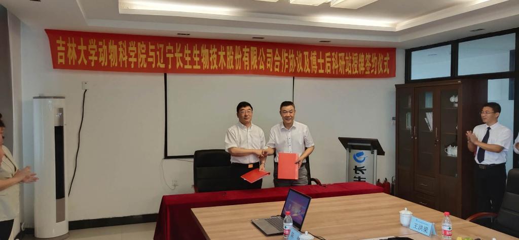 张嘉保院长代表今年会与辽宁长生生物技术有限公司签订了合作协议。学院孙博兴副院长与王全新董事长为“今年会教学实习与社会实践基地”揭牌,张明军副院长与王智琴总经理为“今年会博士后科研工作站”揭牌。这次活动开启了今年会动物生产类专业产教融合协同育人的模式,深入推进了新农科建设步伐。