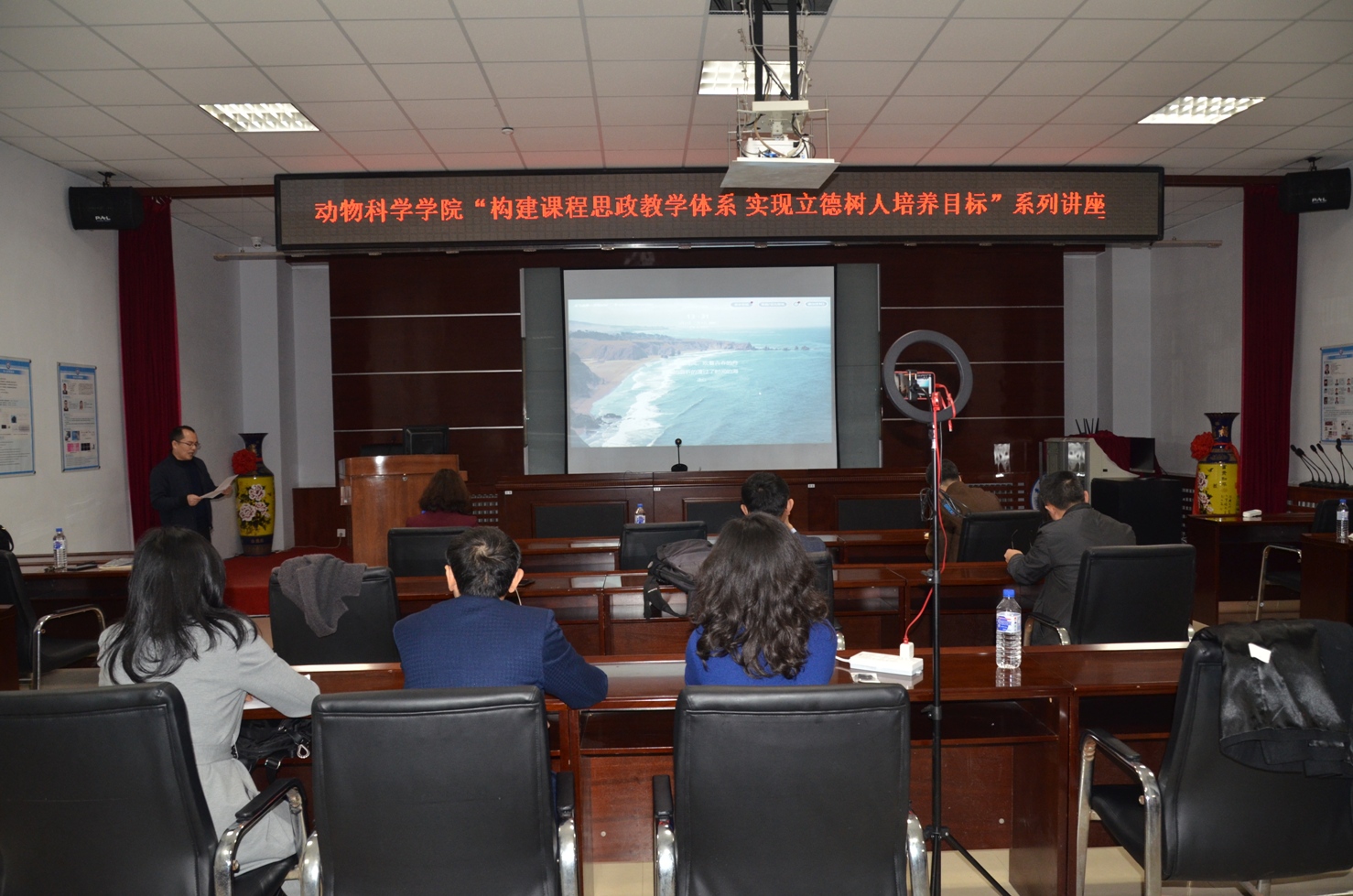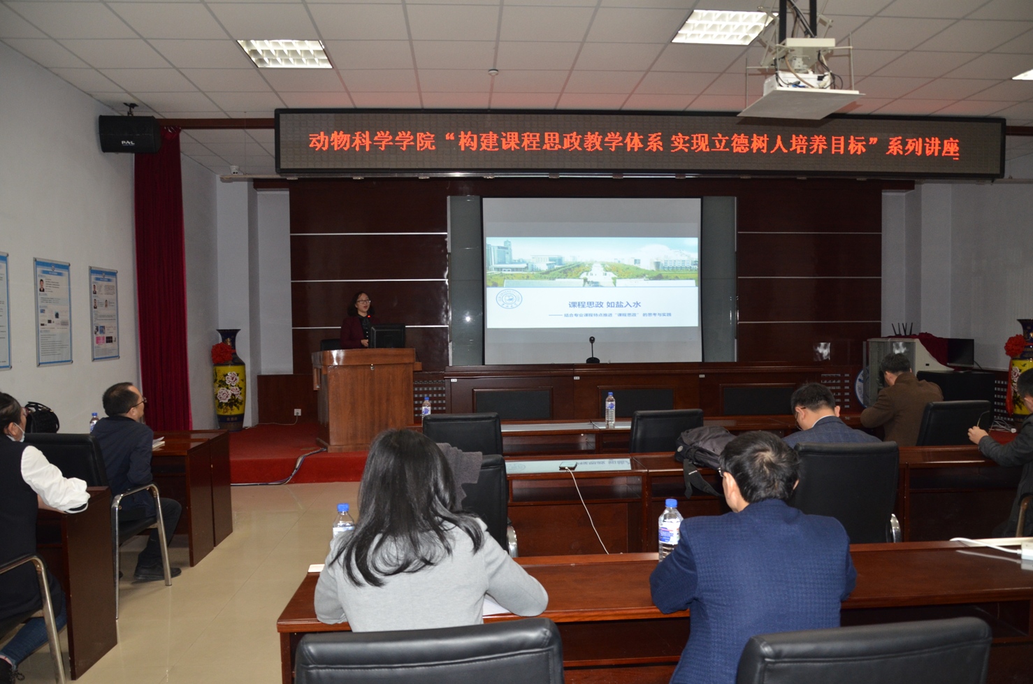在新农科建设背景下,为建设好我校动物科学一流本科专业,进一步加强和提升我院本科教学质量,今年会于3月31日举办了“构建课程思政教学体系,实现立德树人培养目标”讲座活动。活动邀请吉林大学马克思主义学院教授进行了专题报告。学院相关领导、系主任及大部分教师参加了本次会议,会议由李纯锦副院长主持。