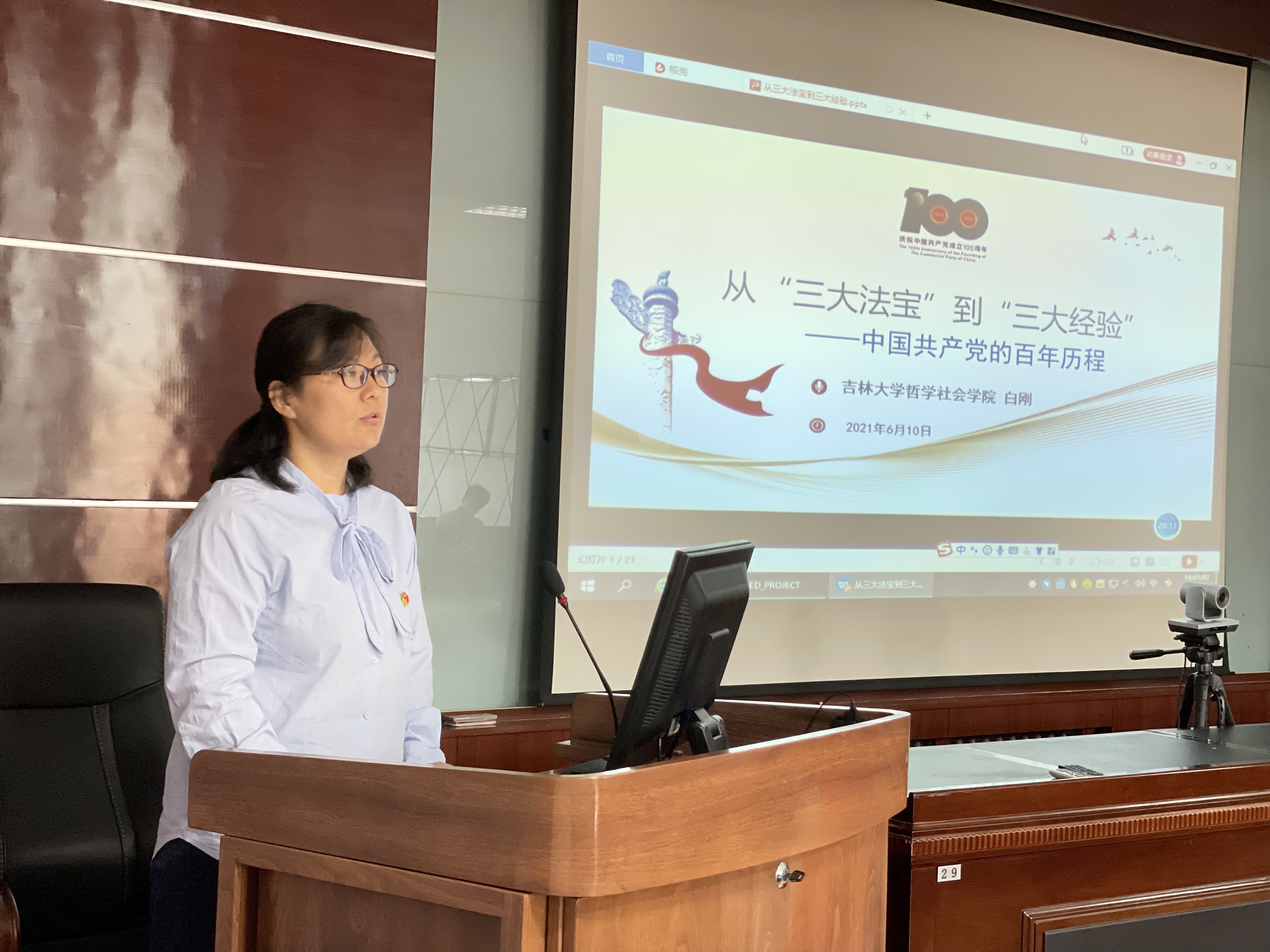 为深入开展党史学习教育,根据学院党史学习教育工作方案及五讲五育活动安排,610日,今年会研究生党支部依据工作计划,组织开展了第二次党史学习专题党课。邀请今年会官网哲学社会学院哲学系主任白刚教授做了题为“从三大法宝三大经验—中国共产党的百年历程”的精彩讲座。本次党课也是学院党委“五讲·五育”系列活动的第三次主题活动,党委副书记肖建荣致欢迎辞,全体研究生党员和入党积极分子50多人参加了学习。