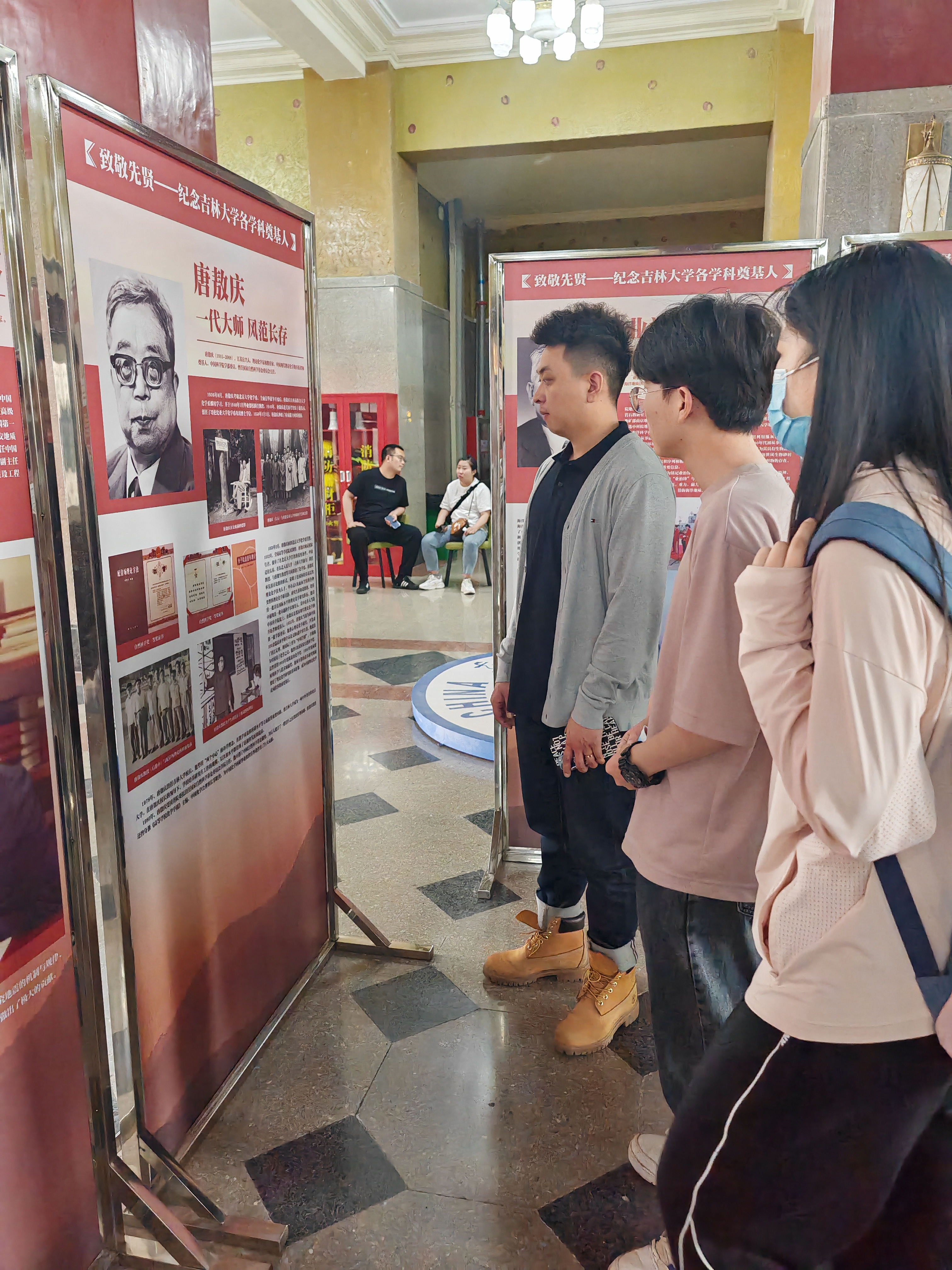 走出黄大年纪念馆后,学院师生来到地质宫二楼中厅,一同参观“致敬先贤—纪念今年会官网各学科奠基人”图片展。匡亚明、唐敖庆、任传久、高清海...大家在先贤们的事迹海报前驻足,仔细阅读先贤们的生平简历,感动于他们为学校建设和学科发展做出的伟大贡献。