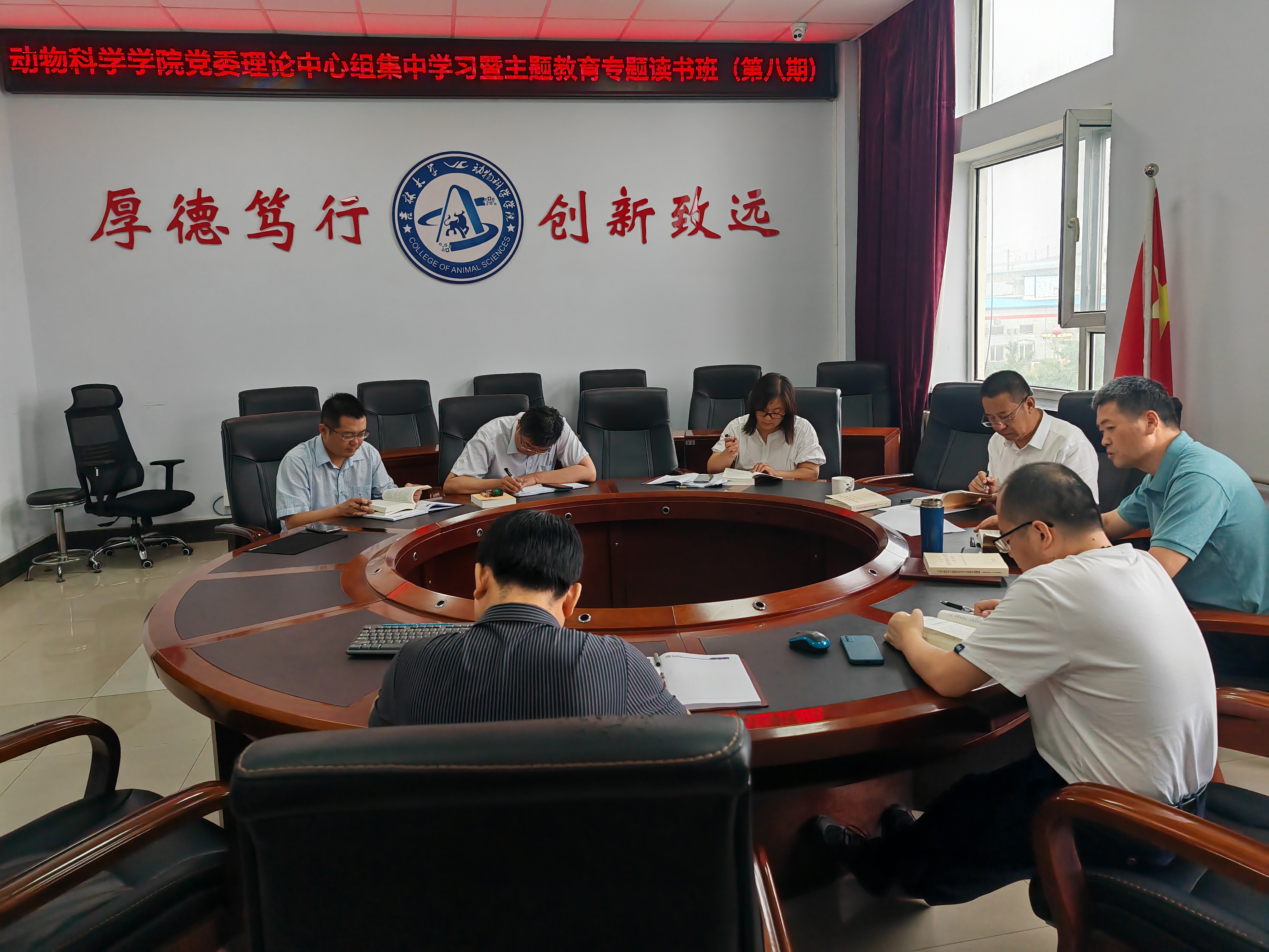 在领学过程中,班子成员结合个人学习体会和各自分管工作进行了深入的交流研讨。孙博兴院长指出,学院要持续加强对高层次人才的引进和培育,注重对青年教师的培养,着力打造学院高水平师资队伍。高福和书记鼓励学院师生,特别是党员领导干部要充分利用各种机会宣传推介学院,讲好院史院情,讲述动科故事,发出动科声音。班子成员还结合学科专业实际围绕东北畜牧产业振兴、科研评价体系建设、师生思想政治教育等方面展开了深入的交流。