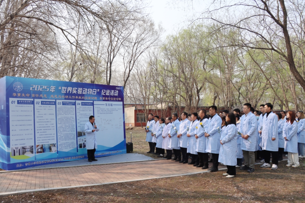 注重结合实际“悟”。当天上午,学校实验动物福利伦理委员会和实验动物中心联合以科学之名和生命之名,在院区“实验动物慰灵碑”前举行2025年“世界实验动物日”纪念活动。纪念活动由副院长袁宝主持,学校实验管理处副处长孙翔宇、科研院科技管理办公室副主任朱峰分别致辞,读书班全体学员和学院部分师生参加纪念活动。党委书记徐仁元以《致敬为人类健康事业奉献生命的实验动物》为题,倡导全校师生加强科技伦理治理,以珍爱之心对待生命,以珍惜之态高效科研,以珍视之情铭记贡献,以珍重之志革新创造,让更多实验动物为人类健康事业做出更大贡献。