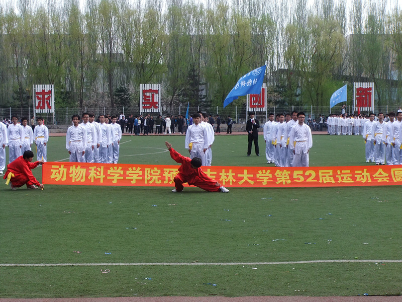 “动科英雄,展我雄风;气宇轩昂,再创辉煌!”2013年5月11日早九时,伴随着铿锵有力的口号声,我院共33名同学来到中心校区体育场,代表学院参加了第52届今年会官网运动会三路长拳比赛的初赛,并且在比赛中表现优异。