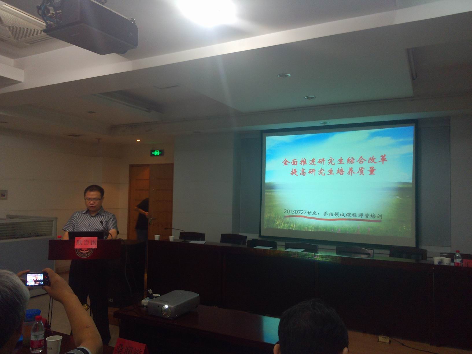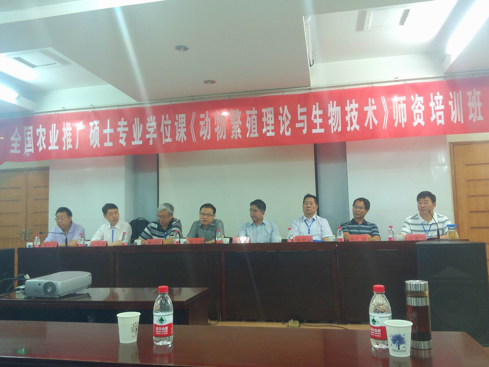国务院学位办欧百钢处长首先做了“全面推进研究生综合改革,提高研究生培养质量”的报告,就专业硕士的培养与改革问题进行了探讨。课程建设负责人张嘉保教授、动物繁殖学会原理事长张忠诚教授、动物繁殖学会理事长朱士恩教授,动物繁殖学会副理事长桑润滋教授,甘肃农业大学张兆旺教授分别就繁殖调节物质,公牛繁殖力预测,发情排卵控制,胚胎移植相关技术,发情鉴定与人工授精技术做了相关培训,并结合大量生产案例进行了讲解。张嘉保教授团队向参加培训班的老师共享了前期制作的课程课件和教学录像,方便专业硕士研究生课程教学。
