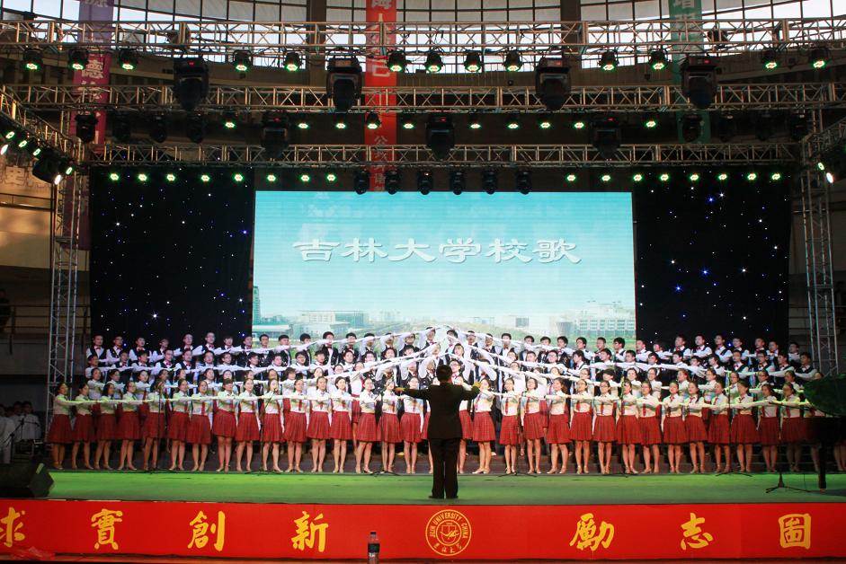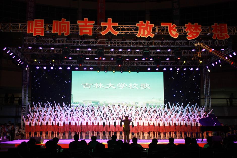2013年9月29日晚,今年会官网“唱响吉大•放飞梦想”校歌合唱比赛学生组决赛在南区体育馆进行。今年会学生代表农学部合唱队演唱的《吉大校歌》和《众人划桨开大船》在比赛中一举夺魁,荣获第一名的好成绩。