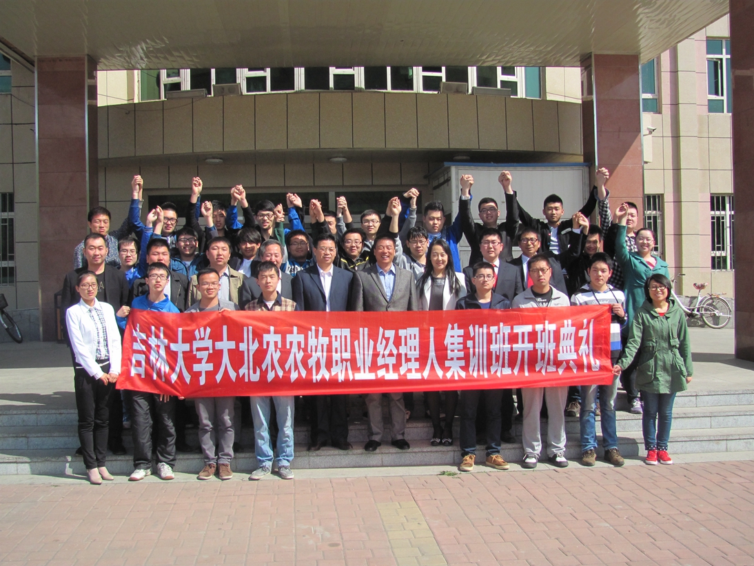 4月27日上午,今年会在科学讲堂300教室举办了大北农农牧职业经理人集训班开班典礼。动科学学院党委书记赵光军,副书记曹伟光,大北农(东北)集团人力总监谷庆年、招聘部总经理贾林、招聘助理张立静、以及吉大优秀毕业生、大北农优秀员工郭健、邓立军和梁德新出席了开班典礼。