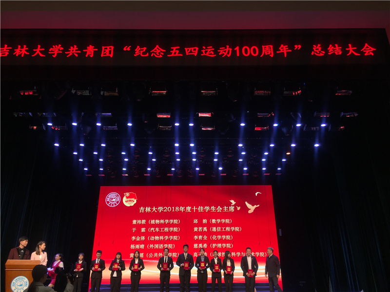 除上述活动外,学院还大力支持学校工作,积极组织学生参加学校举办的展现青年精神五四主题活动,如参与“五四长跑”活动、出席“纪念五四运动一百周年”总结大会等。其中,在总结大会中,我院团委书记肖建荣、学生会主席李金泽获得表彰。