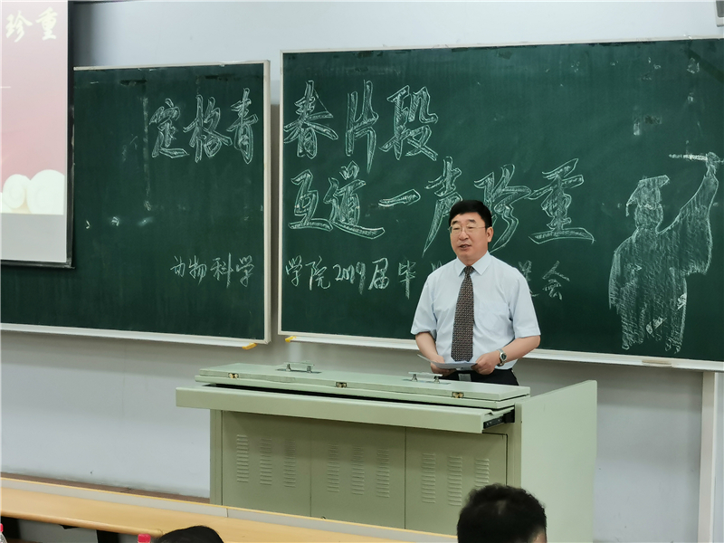 大会正式开始,本次欢送会由团委书记肖建荣主持,在她对到场的领导做了简单介绍后,2015级动物科学专业王皓琪同学作为毕业生代表,上台发表毕业感言。感恩大学四年以来老师们的谆谆教导,感念四年来收获的真挚同学情谊。同时幻灯片上投放出的一张张同学们朝夕相处的生活照片,映出了那每一副真挚的面容下,纯真追梦的赤子之心。王皓琪同学在发言的最后,祝愿同学们前程似锦,希望大家有机会再次相见。