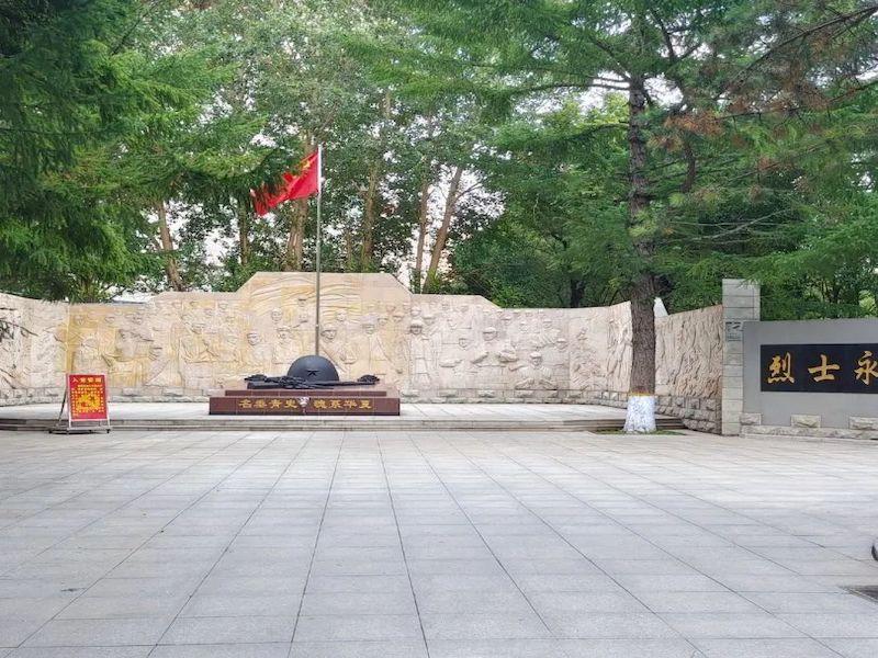 团队成员赵乾宇、刘洪儒、张胜来到位于靖宇崴子恶河南岸的杨靖宇将军殉国地进行参观。一行人从牌楼正门向里开始了参观,来到这个地方,映入眼帘的是一座很大的将军雕塑。走过前导区,直面而来的是中心区的纪念碑,依次走过护碑亭、常青树、纪念馆和纪念塔,队员自觉沉默哀悼,沉默不语。