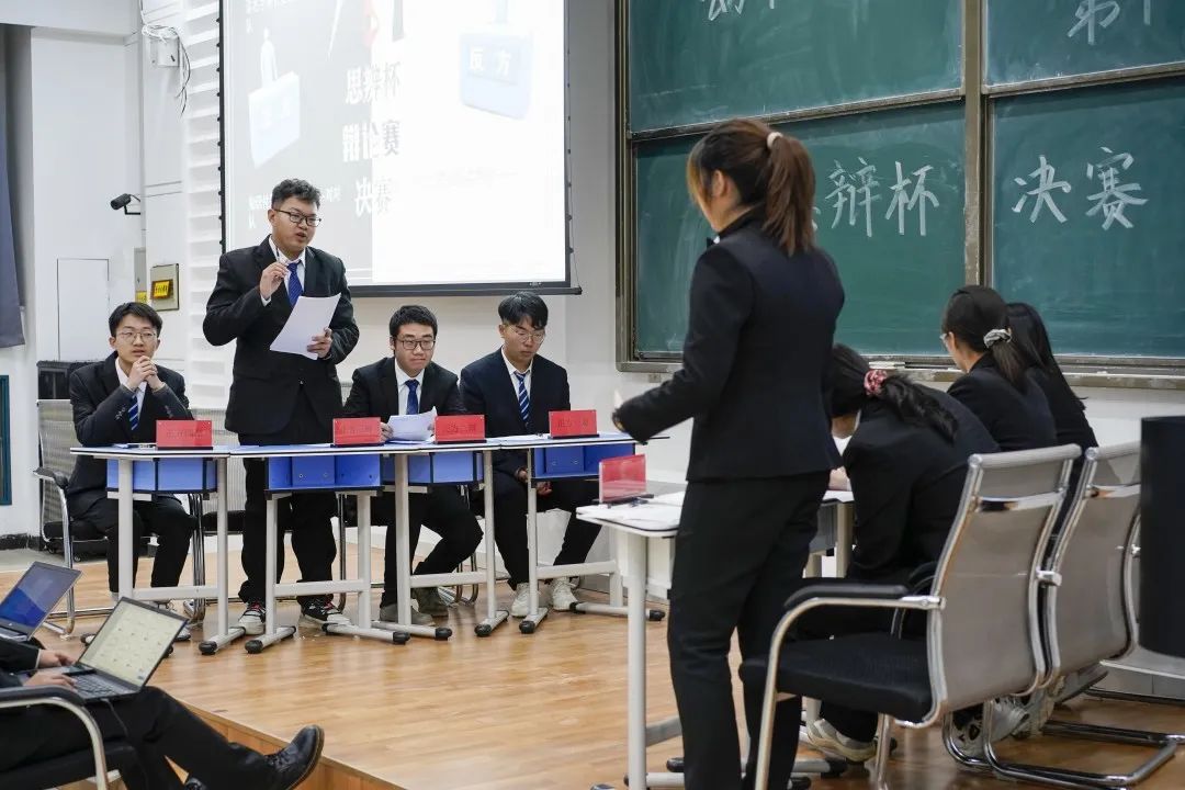 11月14日19:30,第十四届“思辨杯”辩论赛半决赛在经信教学楼F10阶梯教室举办。学生会执行主席王子娇、新媒体中心主任张一凡、第十一届到第十三届“思辨杯”辩论赛最佳辩手王文韬、祁婷婷、王梓权担任本次比赛评委。比赛由学生服务部志愿者唐文博主持。