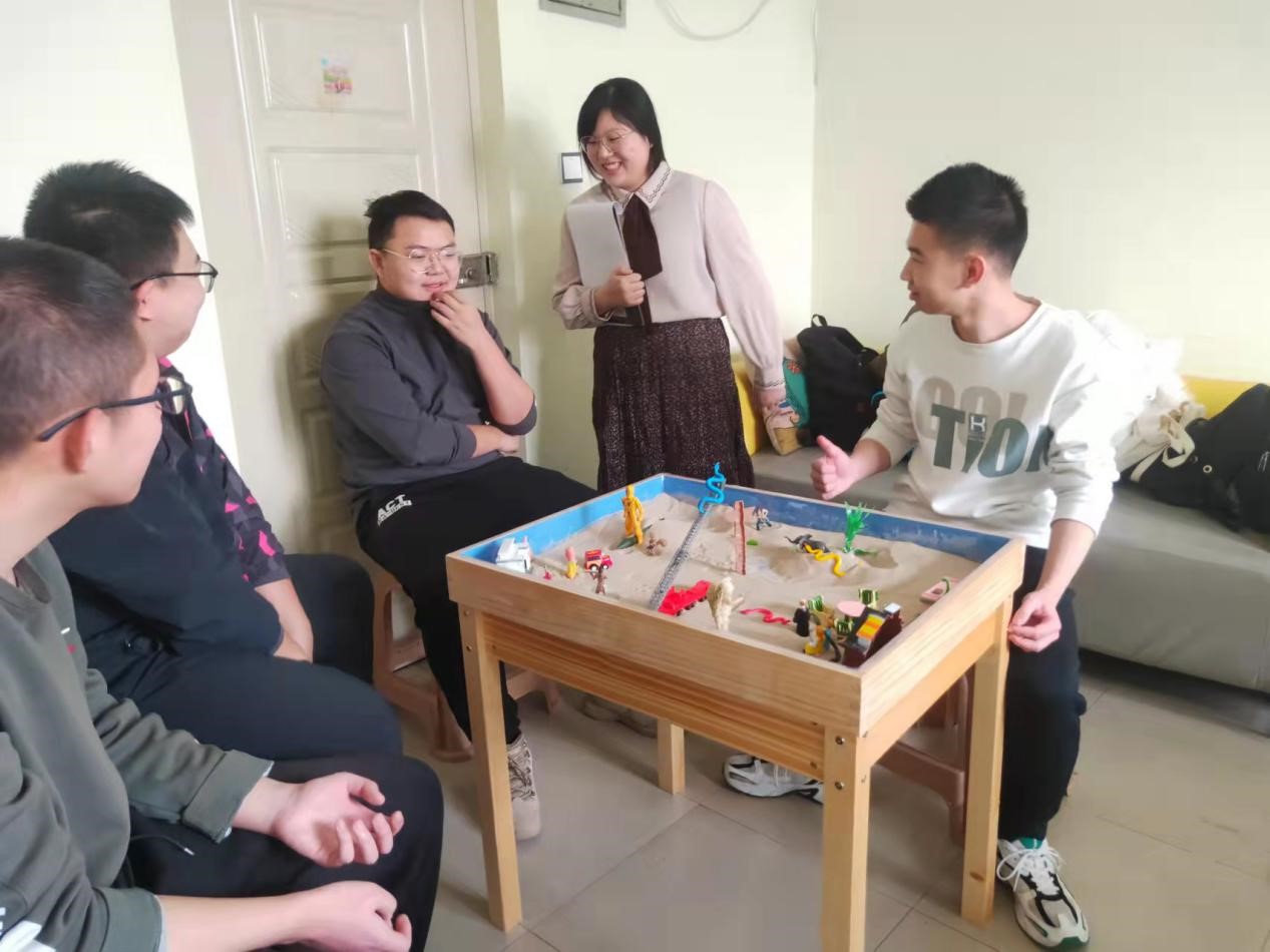 为积极响应学生心理健康指导中心2021年“朋辈协力·心理成长”系列活动的号召,引导同学们更好地认识自己、调适自己,走出困扰,缓解心理压力,今年会于2021年12月5日下午组织本科生开展了“未来的一天”主题团体沙盘体验活动,活动在学院心理团体辅导室举办,7名本科生分成两组先后参加活动。