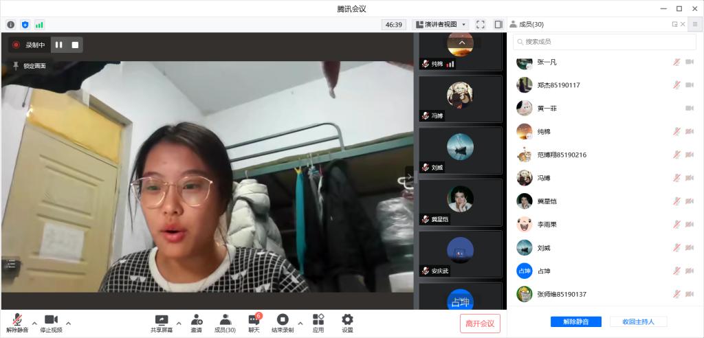 会议伊始,院长孙博兴老师对疫情发生以来同学们的学习生活情况进行了解,讲述自己在隔离期间读书工作的例子来教导大家在封寝时期要调整好自己的状态,多与老师交流,积极学习、充实自己、珍惜光阴,努力准备考研、考公、就业等。随后,由尹暄齐老师组织全班同学共同学习疫情防控基本知识和政策并观看观看短视频《身边人》战“疫”故事,引导全体学生践行社会责任,共同抗击疫情。志愿者胡铭洋、贾冠麟等同学讲述了自己的相关志愿服务故事,王子娇、张一凡等同学分享了自己的学习经验。紧接着,王鹏老师对同学们开展线上学习指导,他表示,由于现在网络资源鱼龙混杂,给我们的生活学习带来便利的同时也伴随着许多的诱惑冲击,因此,希望同学们再次明确理想目标制定一份适合自己的详细封闭管理期间学习计划。会议最后,李纯锦老师对此次班会进行总结:希望同学能够在疫情防控的特殊时期遵守校园属地的管理要求,保证好良好的作息,多与老师、家长、同学加强沟通交流,在寝室里调整好心理状态,积极地面对线上学习以及封寝生活,展示青年独有的青春风采。