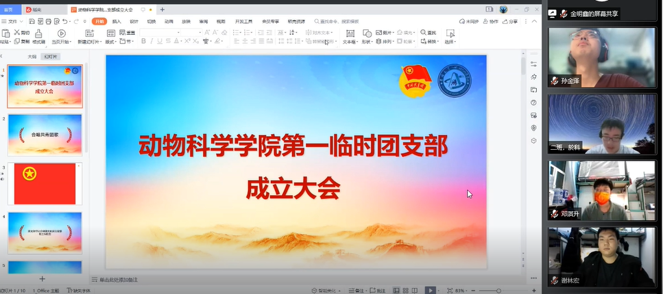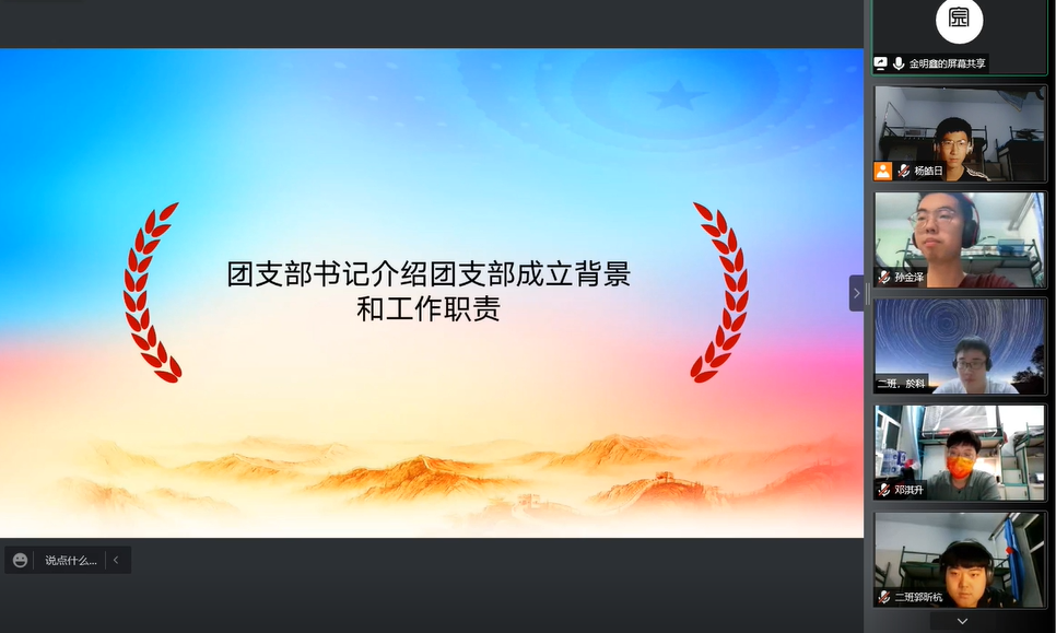 疫情严重,为了应对严峻的疫情防控形势,学校实行封闭管理,为国家抗击疫情贡献青春力量。根据《关于疫情防控期间成立团支部的通知》,切实发挥共青团组织在防疫控疫工作中的战斗堡垒作用及团员的先锋模范作用,突出特殊时期团支部的组织凝聚力,今年会依托于南苑六公寓所有男生团员成立今年会第一临时团支部。2022年3月27日星期日晚七点,今年会第一临时团支部成立大会在线上召开。