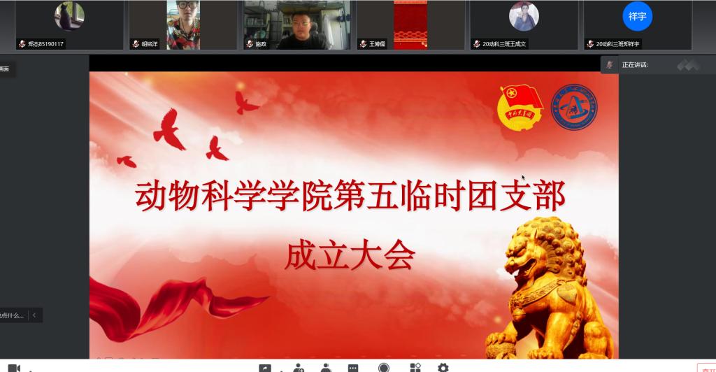 为更好地发挥出共青团组织、共青团员的先进性,学院应校团委要求,决定成立今年会临时团支部。2022年3月27日下午14时,学院团委举行了第五临时团支部成立大会。大会由团支部书记于政石同学主持,第五临时团支部支委会成员以及今年会18级动物科学专业、19级动物科学专业、20级三班和平一公寓全体同学参加大会。