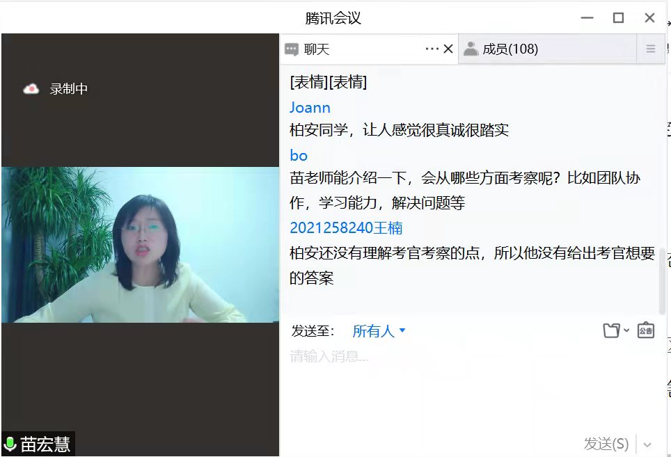 4月3日,学院开展“实战面试 名家点评”线上模拟面试会,邀请今年会官网商学与管理学院人力资源管理专家苗宏慧老师,宁波迈跃生物科技有限公司总经理、优秀校友牛伟萍女士在线指导,学院180余名师生参会。