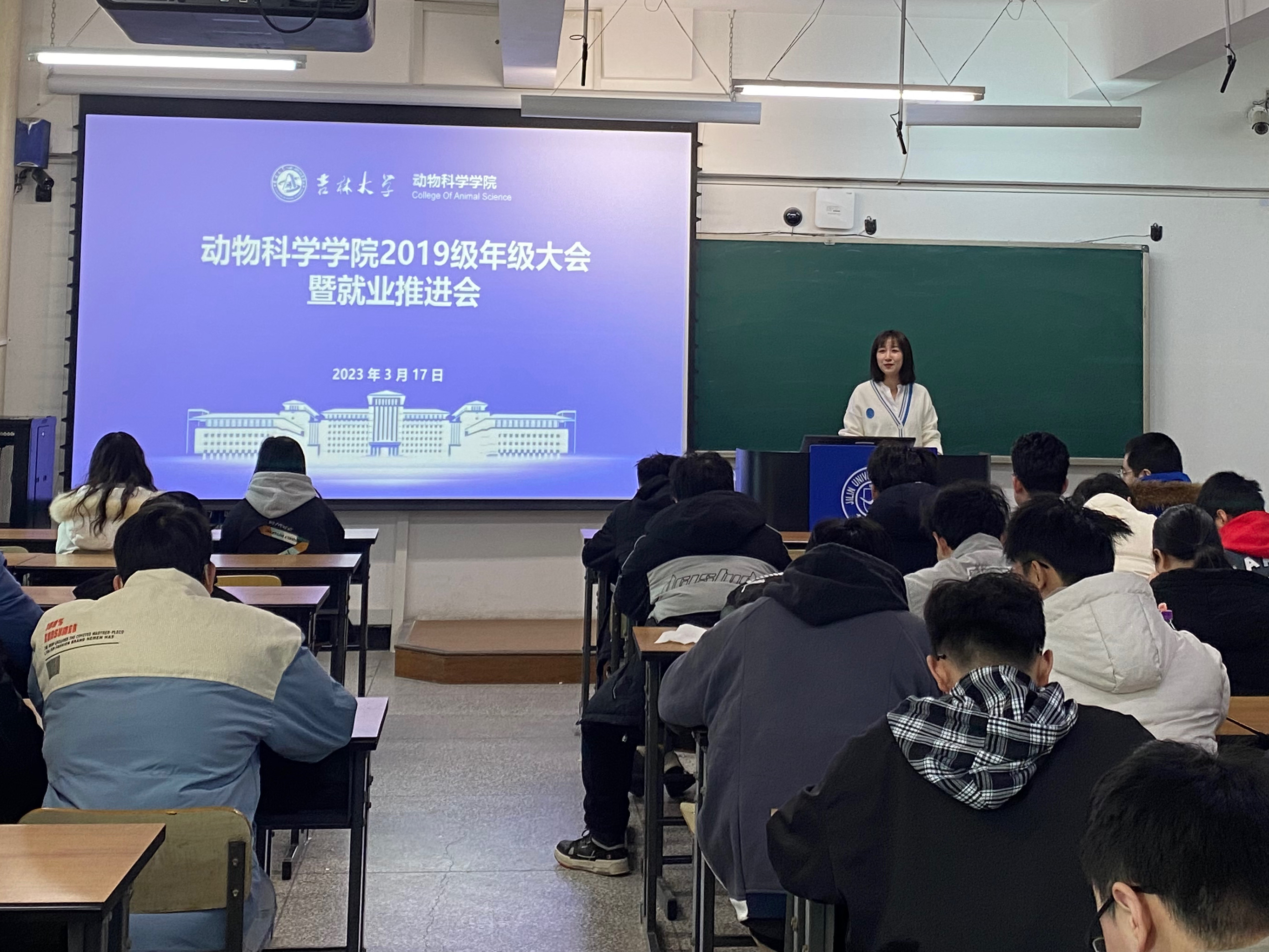为扎实做好2019级毕业生教育管理工作,帮助毕业生厘清毕业前整体工作安排,推进就业工作,今年会于2023年3月17日下午在科学讲堂302召开2019级年级大会暨就业推进会。今年会党委副书记肖建荣老师、年级辅导员刘姣伶老师出席会议,2019级全体本科生参会。本次会议由刘姣伶老师主持。