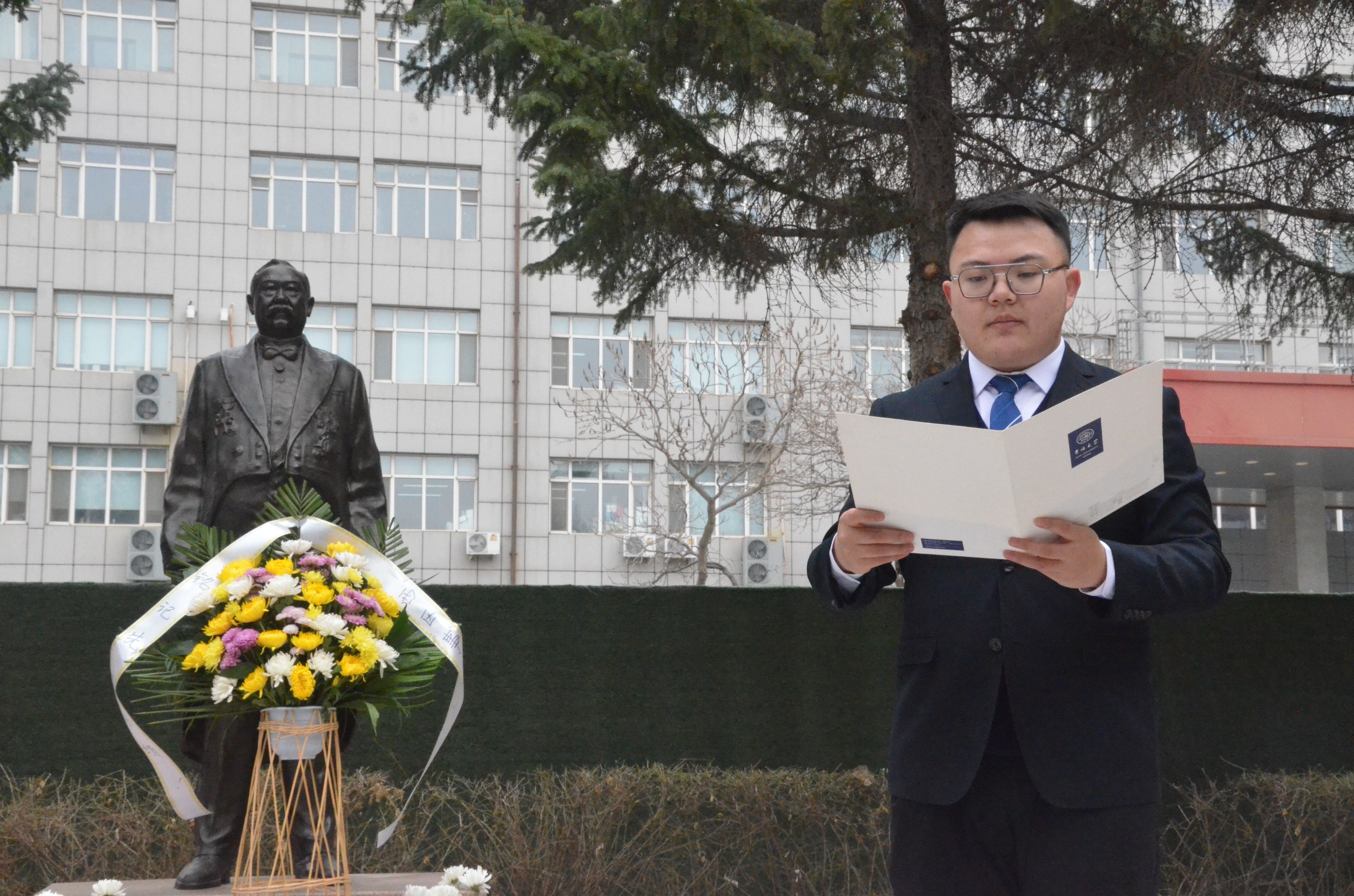 紧接着,学生代表、动物科学专业2020级二班团支部书记王成文发言,表达了对先辈的无限怀念和继承前辈精神矢志前行的决心。他代表全体同学做出表率和承诺,定将以三位先贤为榜样,不忘吾辈青年的初心使命,扎实学好科学文化知识,将个人理想与国家所需、时代所需相结合,立志做有理想、敢担当、能吃苦、肯奋斗的新时代好青年,让青春在全面建设社会主义现代化国家的火热实践中绽放绚丽之花。