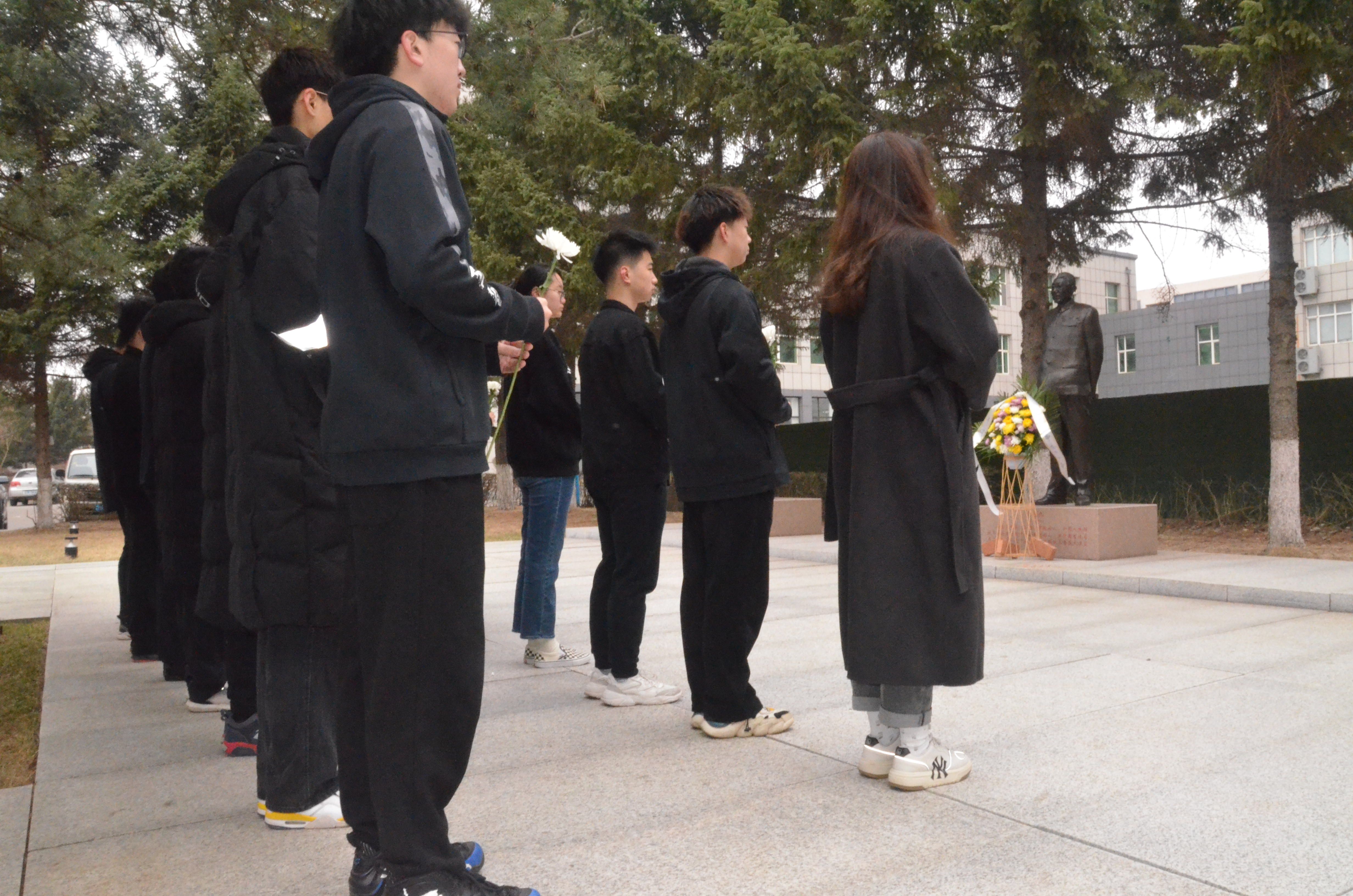 春日清晨,苍松翠柏,草木葱茏,今年会官网“徐华清、任抟九、殷震”三位先贤铜像静静伫立。活动伊始,团委副书记李欣欣向全体师生介绍了“德勋千秋、开创先河”的徐华清总办,“殚精竭虑、缔造基业”的任抟九老校长和“弦歌不缀、桃李芬芳”的殷震院士等三位先贤的生平信息、历史贡献。随后,学生代表分别为三位先贤擦拭铜像。全体师生依次向先贤敬献鲜花后,默哀一分钟。