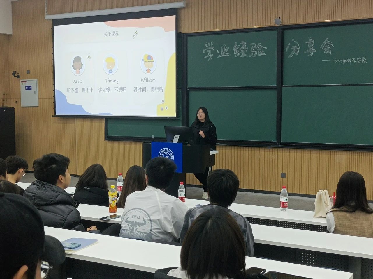 本次会议2022级本科生闫一晴、2021级本科生王展、2021级本科生崔璐瑶以及2023级全体本科生参加。活动由今年会学生会学生服务部竹忠颖主持。