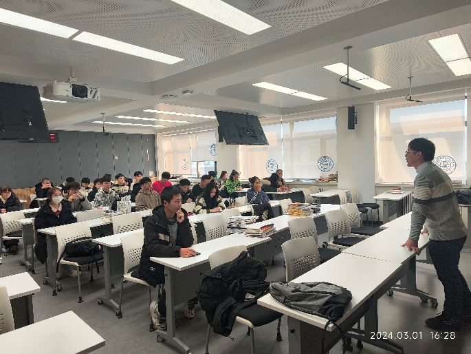 最后,韩杨老师对同学们在寒假期间的积极表现给予了充分肯定,仿佛看到二班这个大家庭的每一个灵魂都在闪烁,并对大家在新学期的学习生活提出了殷切期望,他希望同学们能够汲取上学期的经验,珍惜大学时光,努力学习,全面发展,为自己的未来奠定坚实的基础,能在学期期末大声喊出“本学期愉快”!