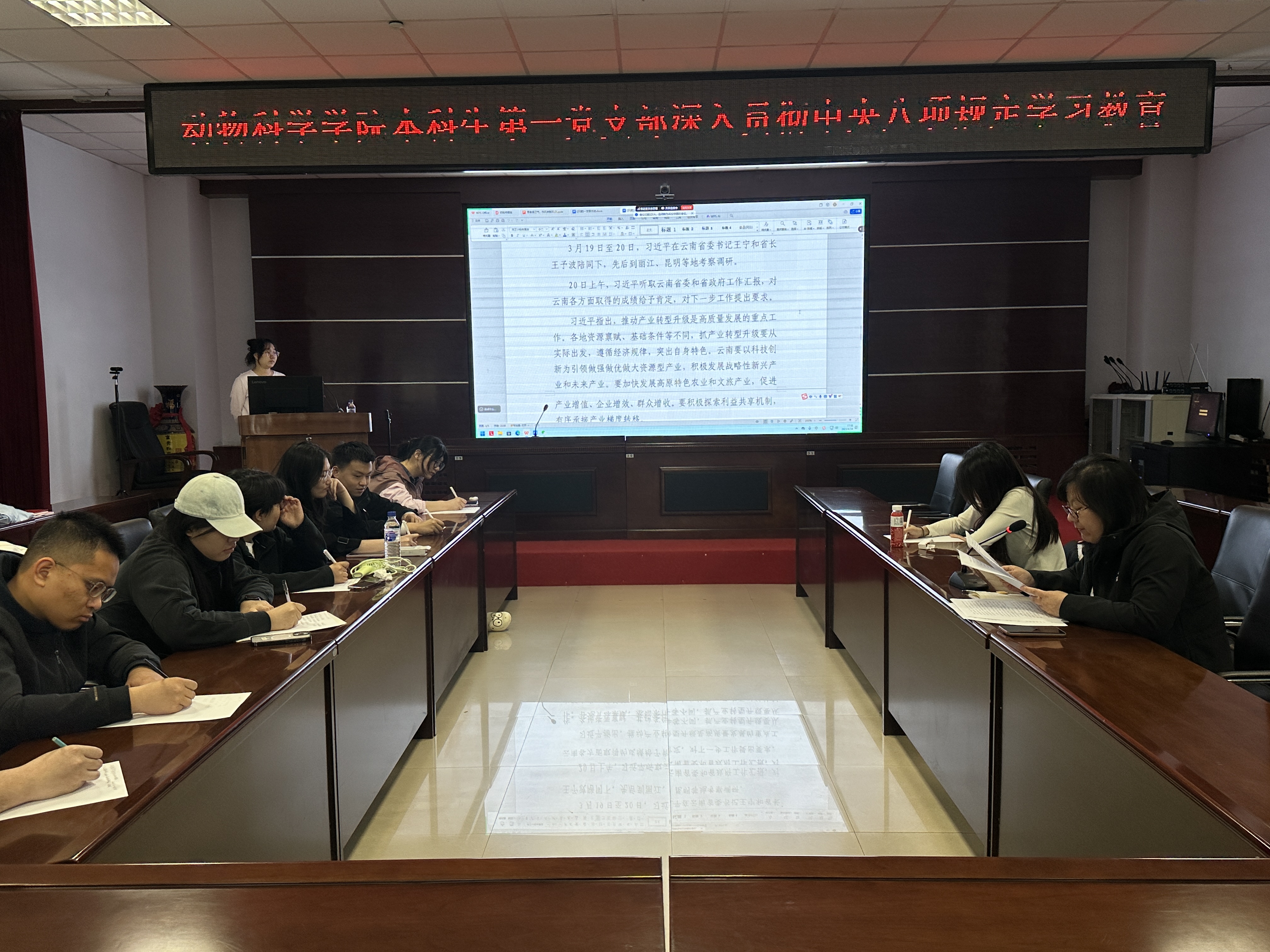 随后,本科生第一党支部书记肖建荣同志领学习近平总书记在贵州、云南考察时的重要讲话精神,强调“作风建设永远在路上”的政治要求。肖书记结合高校育人实际,系统阐释了中央八项规定精神在青年学生党员教育管理中的实践路径,要求全体党员从“学术诚信、生活作风、服务意识”三个维度深化认识。