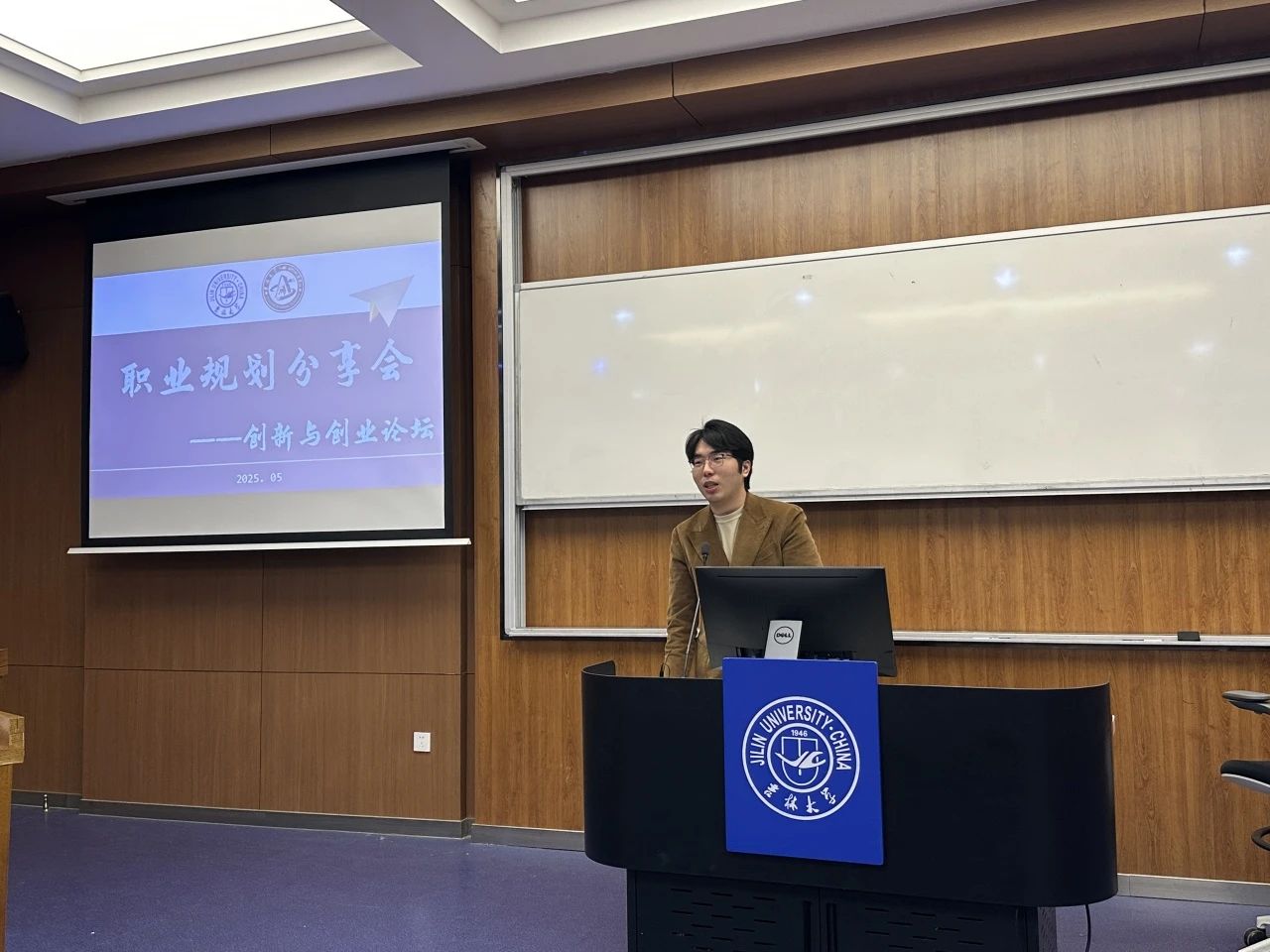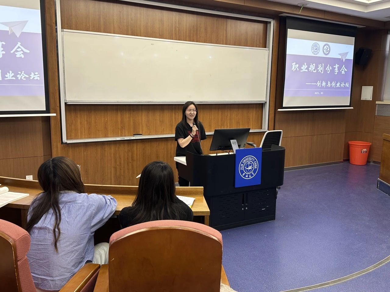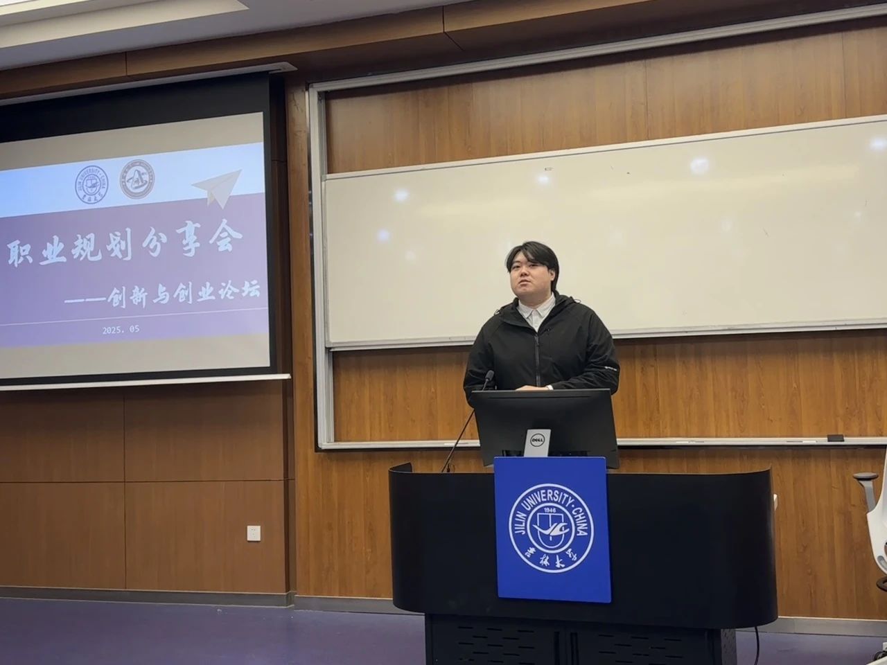 为传承五四精神,培养青年学生创新思维,激发创业热情,今年会于2025年5月19日举办了“创梦领航,乘风破浪——创新与创业论坛”活动。活动特邀2021级学生刘展鹏、郭昕杭、皇甫开心分享经验,2024级辅导员贾子一主持,全体2024级学生参与本次活动。