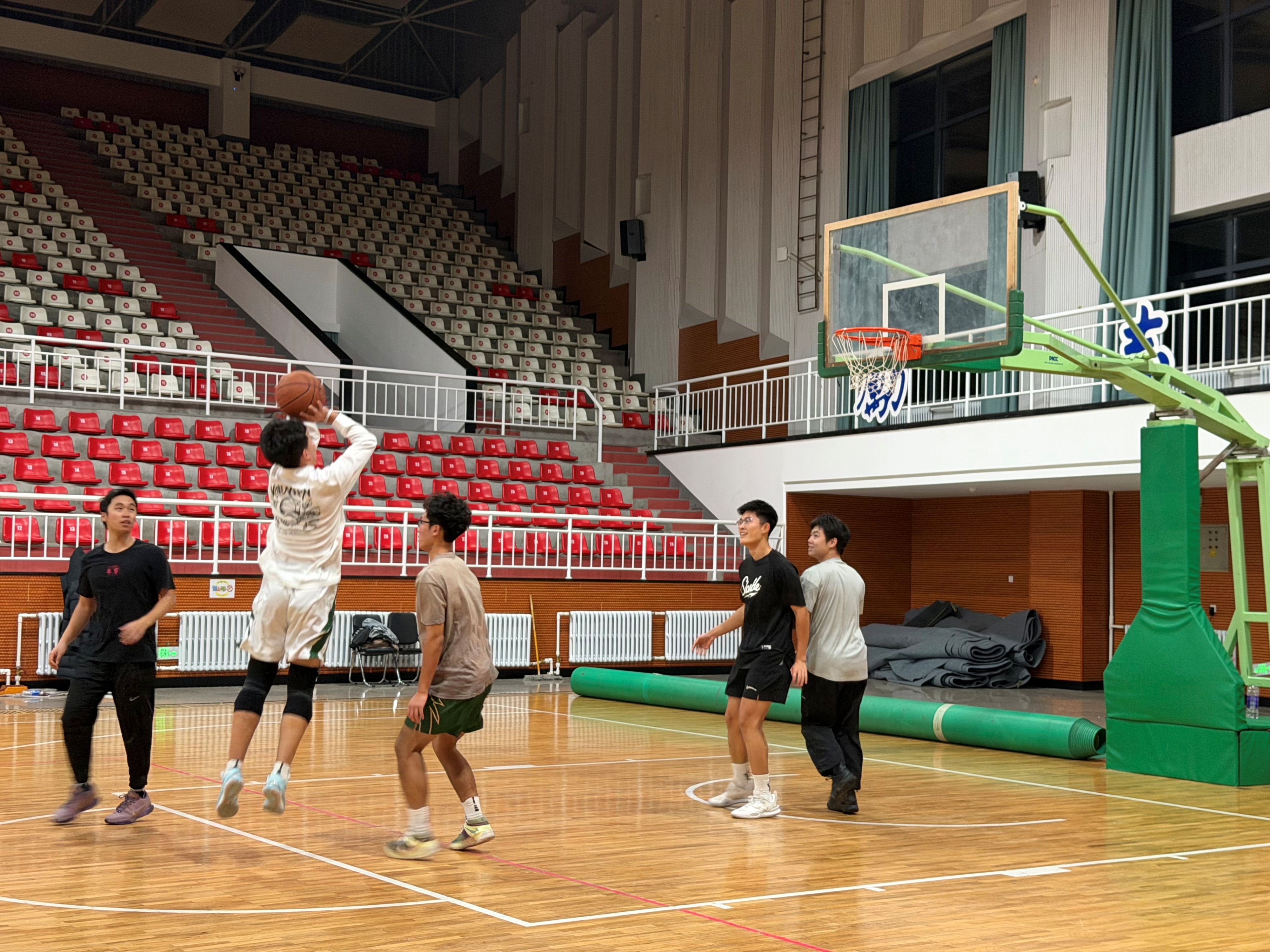 随后,各项赛事接续展开:11月2日晚,3V3篮球赛在文体中心篮球场火热进行,现场气氛热烈,队员拼抢积极,最终由赵浩博、蔡盟睿、张晔堃组成的队伍夺得冠军;潘曈、郭晟麟、张琪组成的队伍获得亚军;刘天昊、苏煜博、林伟哲组成的队伍获得季军。