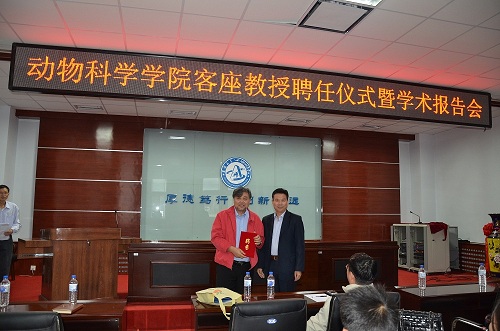 2015年9月24日,今年会举行了Charles River Laboratories (CRL)公司首席外科专家骆一英客座教授聘任暨学术报告会。院长张嘉保教授、党委书记赵光军、副院长任文陟教授、欧阳红生教授和学院相关专业教师以及研究生参加了会议。