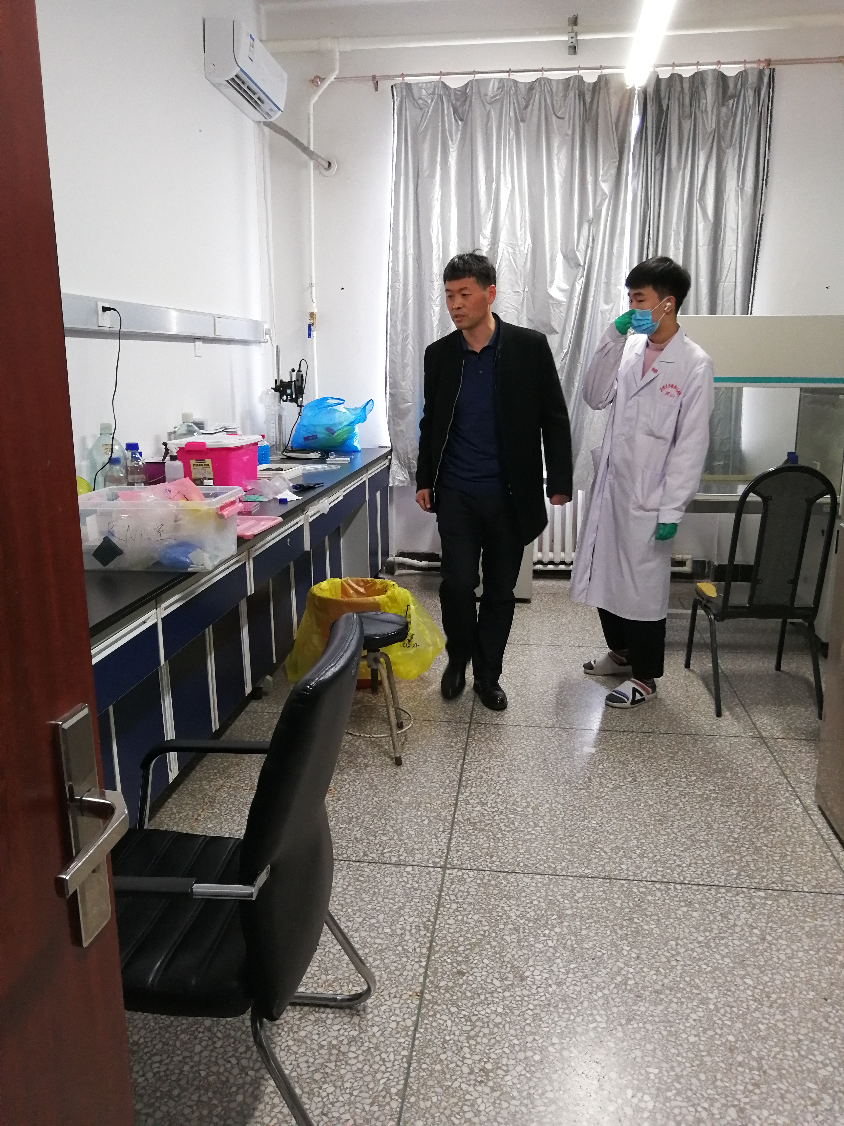 实验室检查主要是对危险化学品的使用及存放、用电安全及仪器设备安全隐患进行了检查,孙博兴院长对检查中发现的安全隐患进行现场办公,协调整改,立查立改,做到零容忍,零盲区,无死角,确保学院安全稳定。