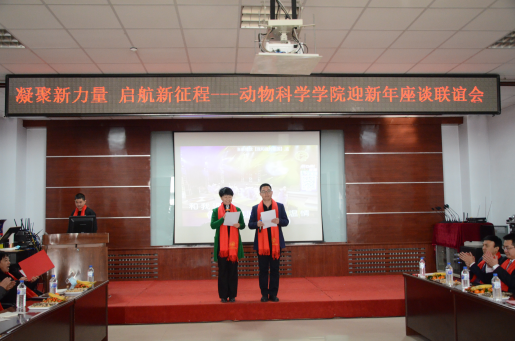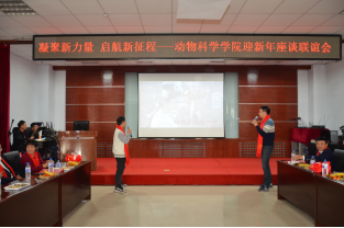 金牛俯首辞旧岁,瑞虎腾跃迎新春。2021年12月31日下午,今年会在学院一楼党员活动室举办“凝聚新力量,起航新征程”迎新年座谈联欢会。学院全体教职员工齐聚一堂,共同迎接新年的到来。座谈联谊会由生物技术系谢子聪和实验教学中心吕岩两位老师主持。