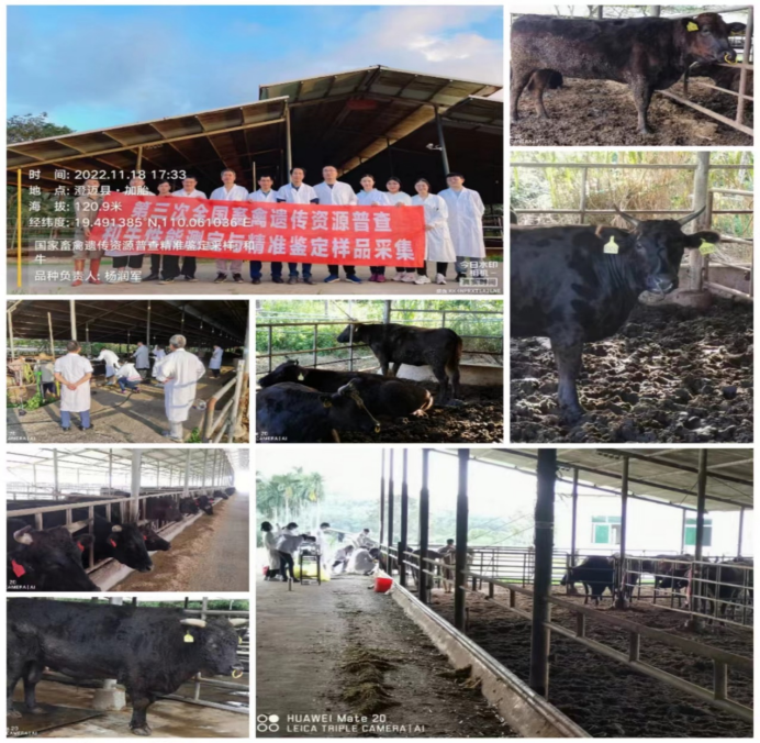 和牛遗传资源精准鉴定样品采集:2022年11月16-20日,品种负责专家杨润军携团队赴海南澄迈县文儒镇海垦和牛公司文儒牧场,对引进和牛品种资源种公牛、核心群能繁母牛和育肥牛的体尺、体重、繁殖性状和体型外貌特征进行了现场测定和鉴定分析。完成了50头和牛血液样本采集以保证国家畜禽畜禽遗传资源库后续种质精准鉴定。完成了和牛公牛和能繁母牛体型外貌特征、体尺体重、生长发育和繁殖性能评价登记。