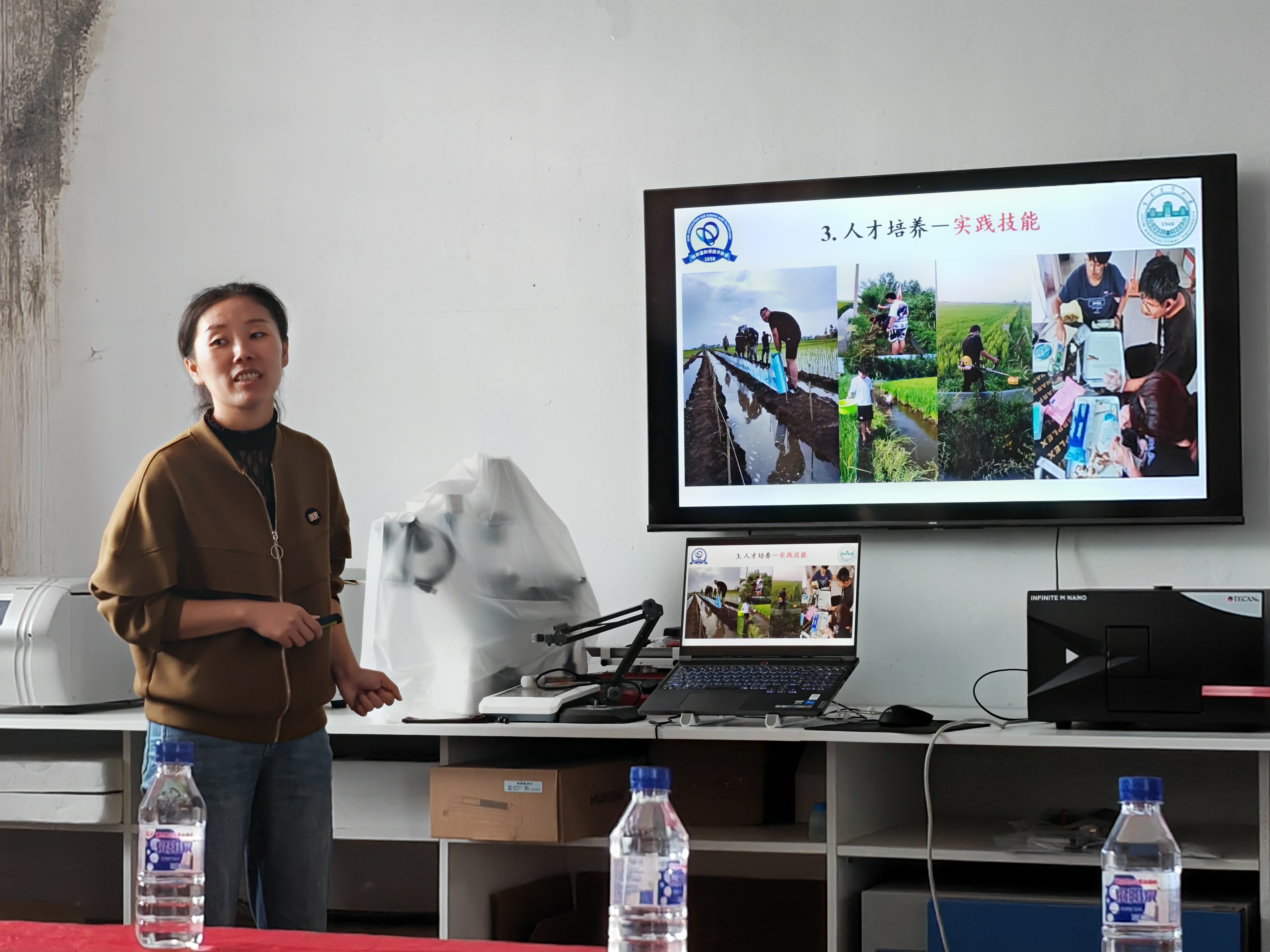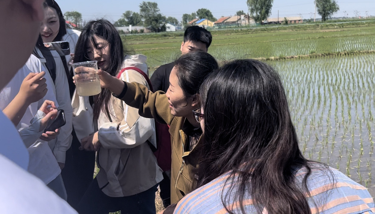上午9时,科技小院首席专家、吉林省乡村振兴专家服务团专家、吉林农业大学动物科学技术学院水产养殖系教师王秋举,经济动物学系系主任吴旻,公主岭市蓝谷水产养殖农民专业合作社社长赵春雨对大家的到来表示热烈欢迎,并带领大家走进试验田和大棚,实地讲解吉林省稻渔综合种养特色模式。