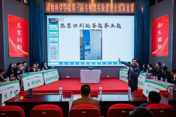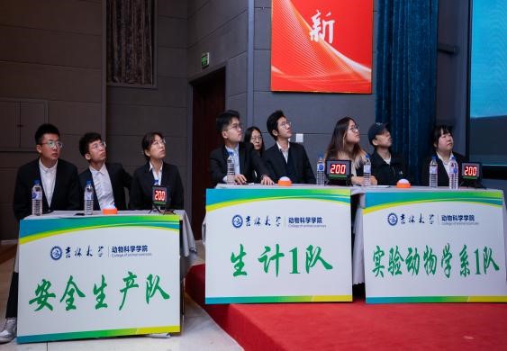 本次比赛学院共有6支队伍参与,动物科学系、实验动物学系和生物技术系各选派出2支队伍参与竞赛。竞赛分为五个环节,分别是必答题环节、单选抢答题环节、多选抢答题环节、判断抢答题环节和隐患识别抢答题环节。