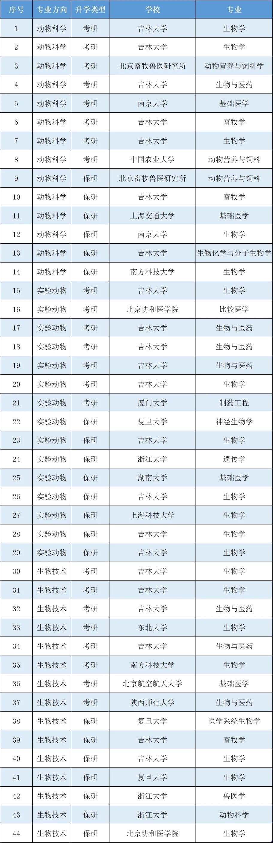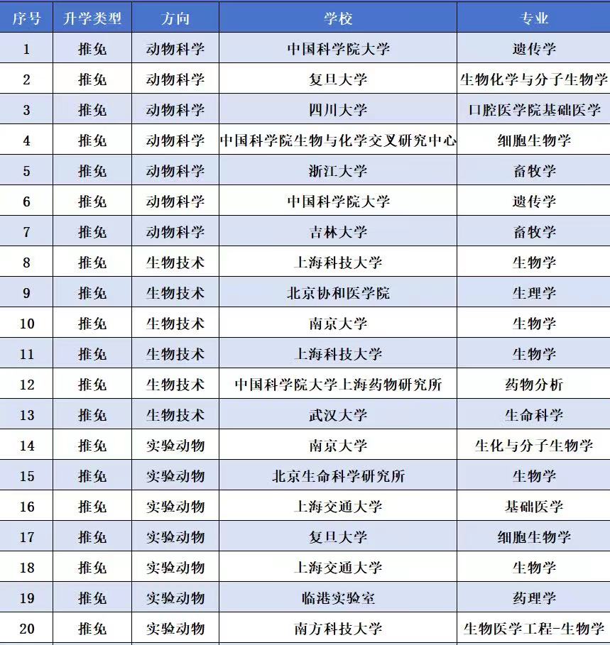 动物科学专业为“卓越人才教育计划”试点项目,近三年推免落实率为26%左右。