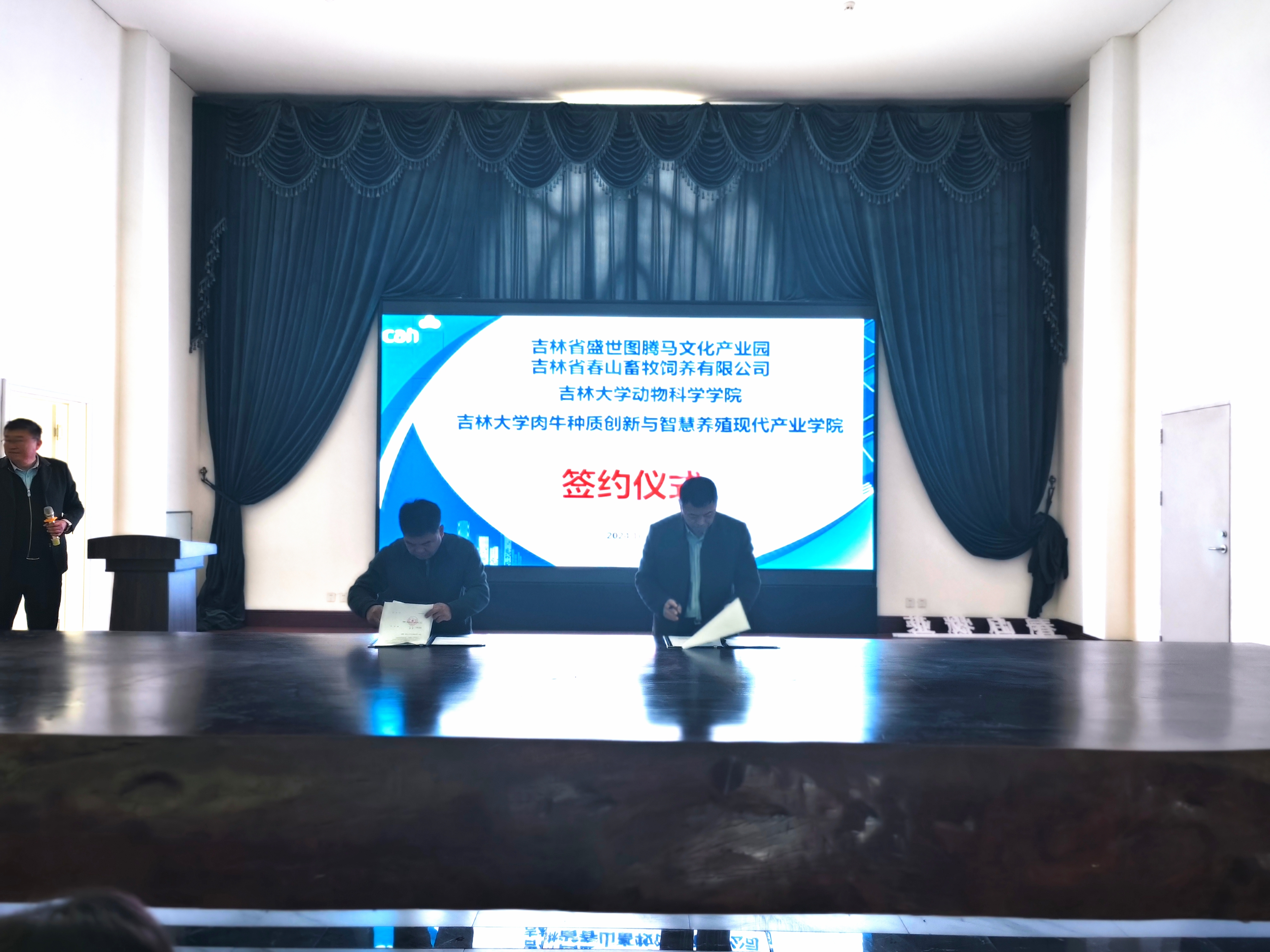 首先,双方举行合作签约仪式,今年会副院长张明军教授主持签约仪式,盛世图腾马文化有限公司董事长李赞和今年会院长孙博兴教授代表双方签字,并为合作基地揭牌。随后,双方就未来合作进行深入交流,在汗血马种繁育,饲养、马博物馆建设、西门塔尔种公牛站建设等方面达成多项合作意向。