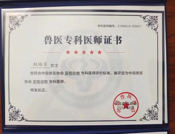 今年会权福实副教授被评选为第一批实验动物专科医师