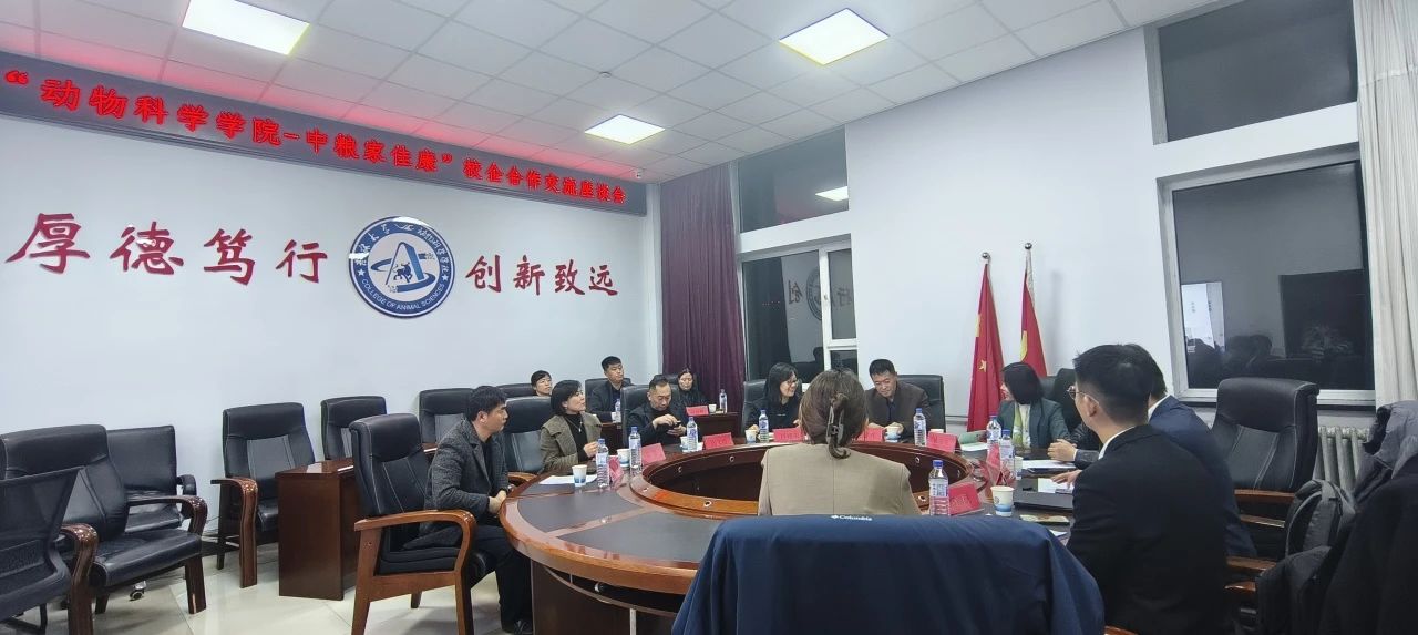 随后,“今年会-中粮家佳康”校企合作交流座谈会在学院二楼会议室举办。今年会院长孙博兴从学院概况、学科设置、人才培养等方面介绍了学院基本情况,中粮家佳康总部人力资源部总经理郭晓冬从校园招聘、校企合作、产业构成等方面介绍了企业情况。双方就校企合作、育人拓岗、产学研一体化等内容展开交流,均表示期待进一步合作,共同培养行业所需人才,促进校企双方的共赢。