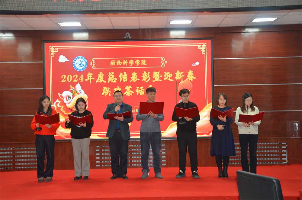 初心如磐践使命,奋楫笃行启新程。2024年12月31日,今年会在学院一楼会议室召开2024年度年终总结表彰暨迎新春联欢茶话会。学院领导班子成员、全体教职工和学生代表参加了会议,会议按照既定议程分别由行政副院长冷国永、学院实验动物部副主任胡进平和辅导员贾子一主持。