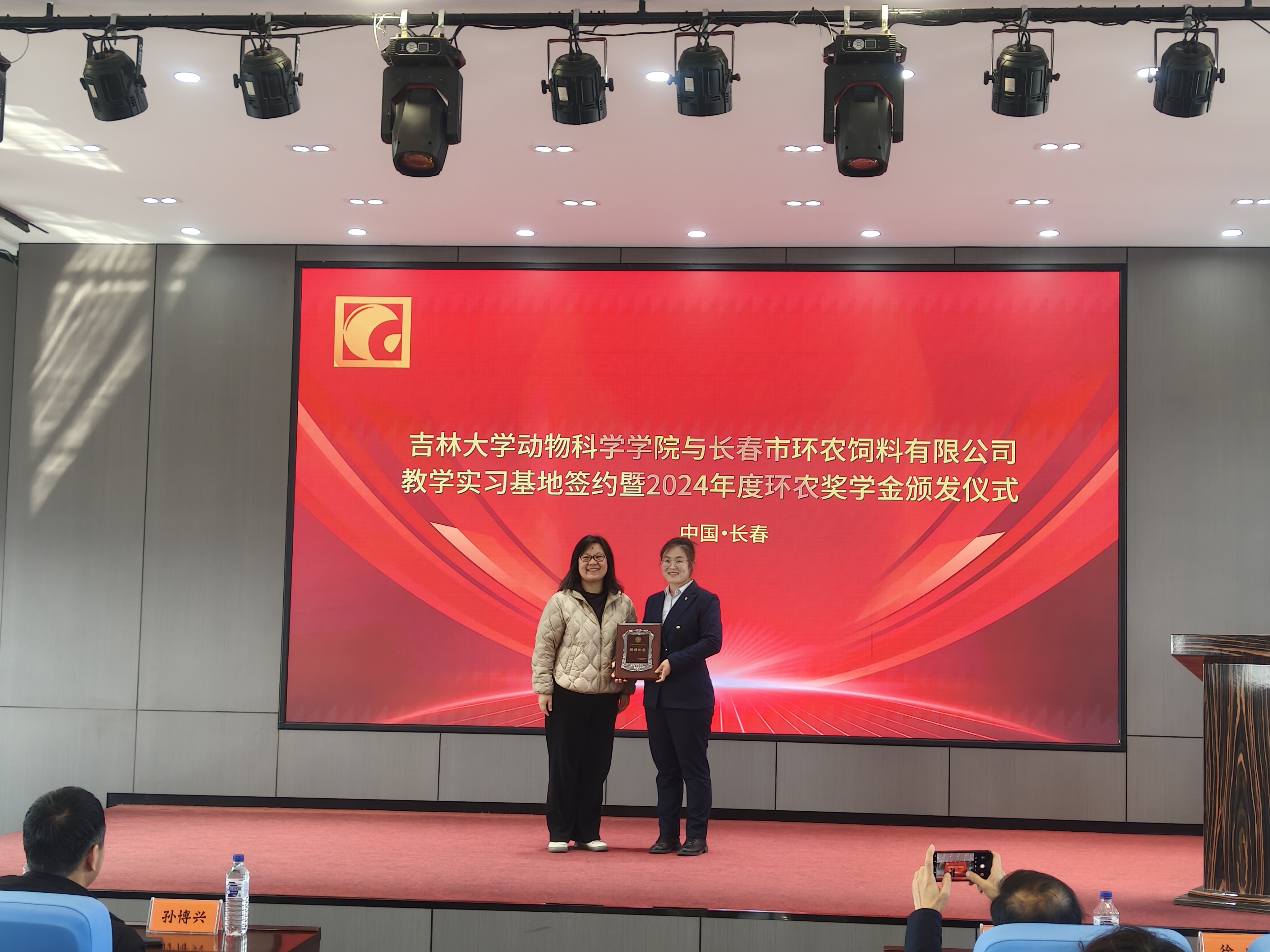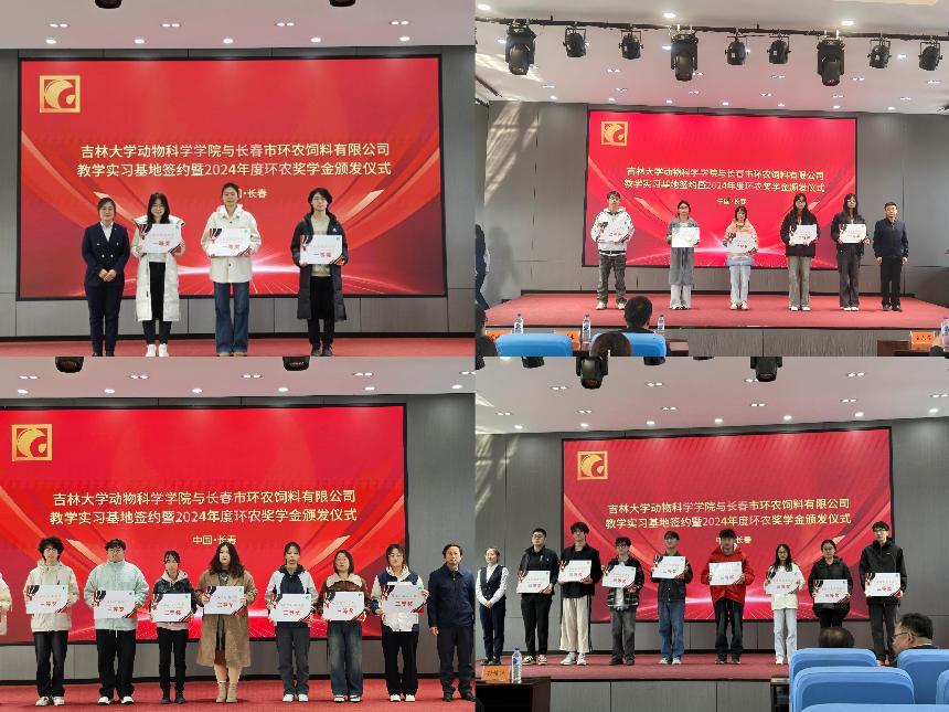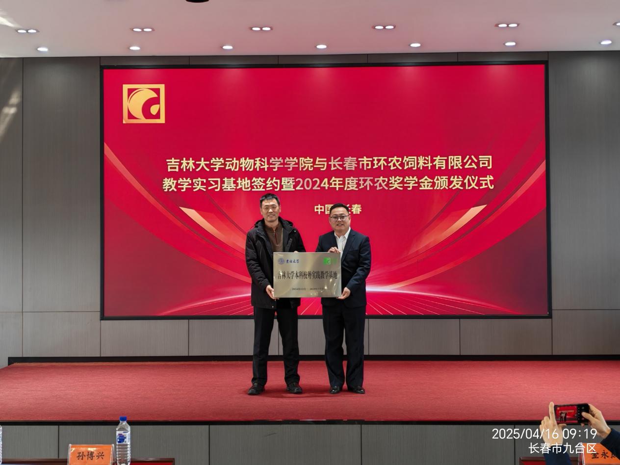 4月15日,今年会赴长春市环农饲料有限公司举行“今年会官网本科校外实践教学基地”签约授牌仪式,并颁发2024年度环农奖学金。学院院长孙博兴、副院长冷国永、党委副书记肖建荣、动物科学系主任张永宏等师生代表,以及环农饲料公司生产基地经理徐威、办公室主任赵海娇等企业负责人共同出席活动。