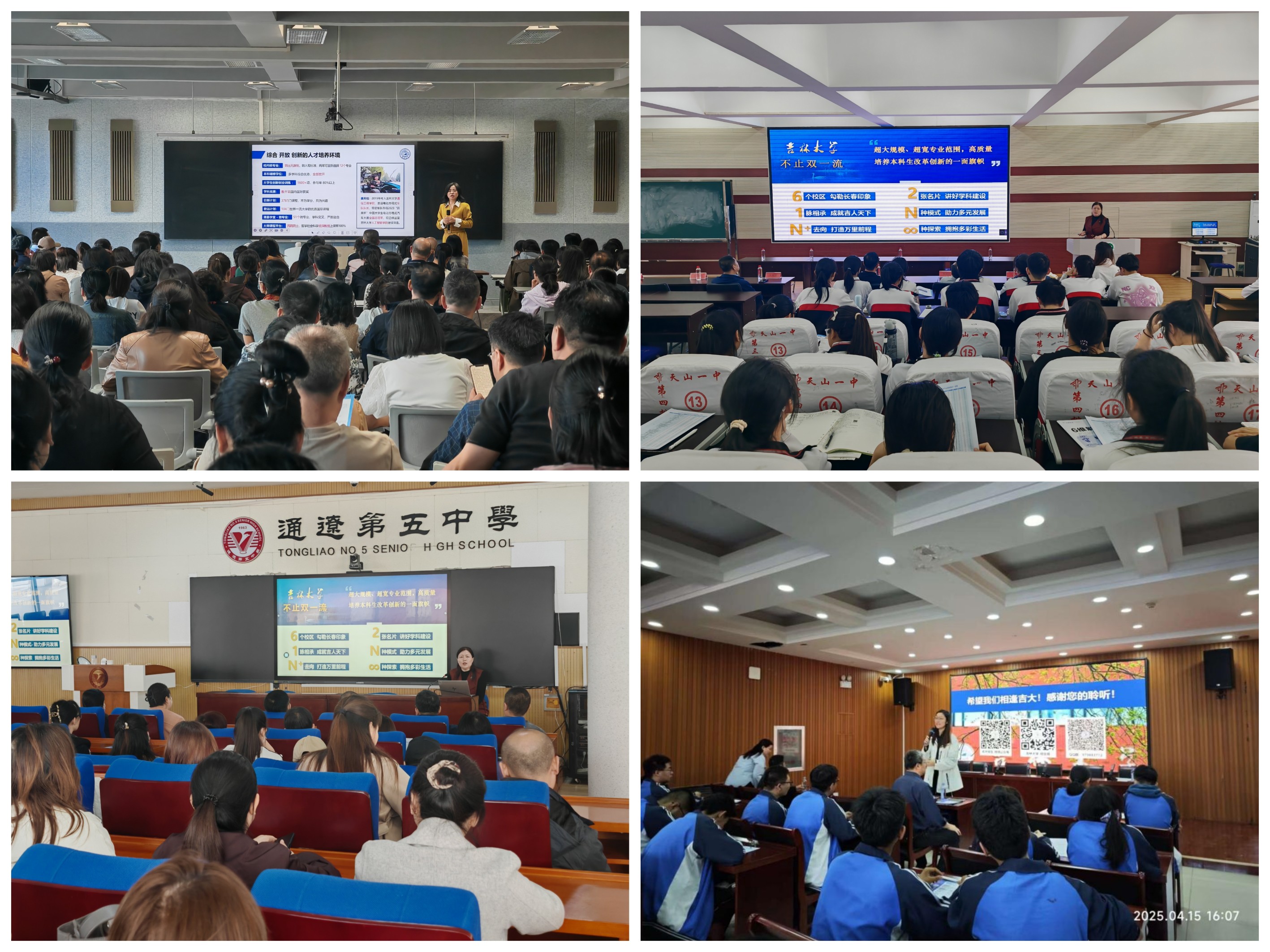 今年会官网是在内蒙古自治区招生最多的“双一流”高校之一,受到自治区高中学校和广大考生与家长的密切关注。4月14日至17日,动物科学院分别与呼和浩特、赤峰和通辽三地教育部门对接,先后到呼和浩特市第二中学、内蒙古师范大学附属中学、林西县第一中学、巴林左旗林东一中、阿鲁科尔沁旗天山第一中学、通辽五中和通辽实验中学等7所高中学校开展校地大中衔接,面向学生与家长,展示今年会官网学科专业建设、人才队伍、教育资源等培养特色,结合内蒙籍考生近年录取、升学、就业去向等情况,推进“招-培-就”一体化具体工作。
