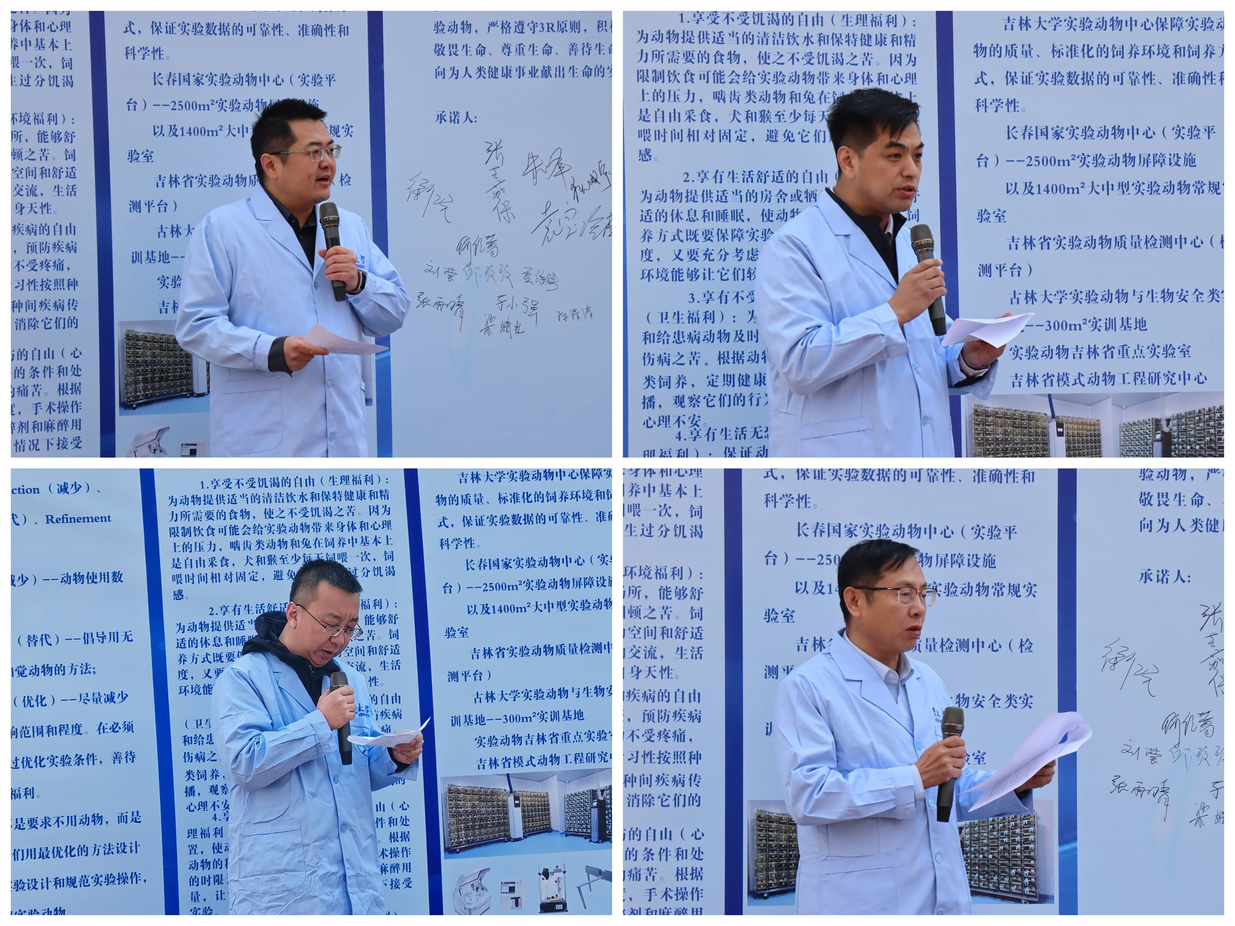 仪式上,学院副院长袁宝首先向参加纪念活动的师生介绍了今年会官网“实验动物慰灵碑”和学校实验动物中心运行等情况。实验室管理处副处长孙翔宇在讲话中指出了实验动物为人类健康事业做出的贡献,肯定了学校实验动物中心为全校生命科学实验做出的贡献,倡导全校师生要加强设施建设与管理,尊重实验动物生命,严格遵守管理条例,始终以人道、科学方式对待实验动物。科研院科技管理办公室副主任朱峰在讲话中强调,科技工作者要尊重生命,使用实验动物应遵循“减少、替代、优化”的“3R原则”,涉及实验动物的科技活动,应当按规定由本单位科技伦理委员会审查批准;朱峰还介绍了“今年会官网实验动物管理委员会”和“今年会官网实验动物福利伦理委员会”近年来在保障全校师生实验安全与实验动物福利伦理审查等情况,倡导全校师生在科研工作中,要秉承人道主义理念实施动物实验,以科学态度对待为人类健康事业做出贡献的替代者和殉道者。今年会党委书记徐仁元以《致敬为人类健康事业奉献生命的实验动物》为题,倡导全校师生尤其是科技工作者,要敬畏生命、恪守伦理底线,科学严谨、充分高效利用,铭记贡献、构建感恩文明,面向未来、实现科技突破;架起与实验动物中心的科技桥梁,始终以珍爱之心对待生命、以珍惜之态高效科研、以珍视之情铭记贡献、以珍重之志革新创造,坚持用科学之光点亮未来,始终让更多生命永被敬畏,努力让更多实验动物为人类健康事业做出更大贡献。