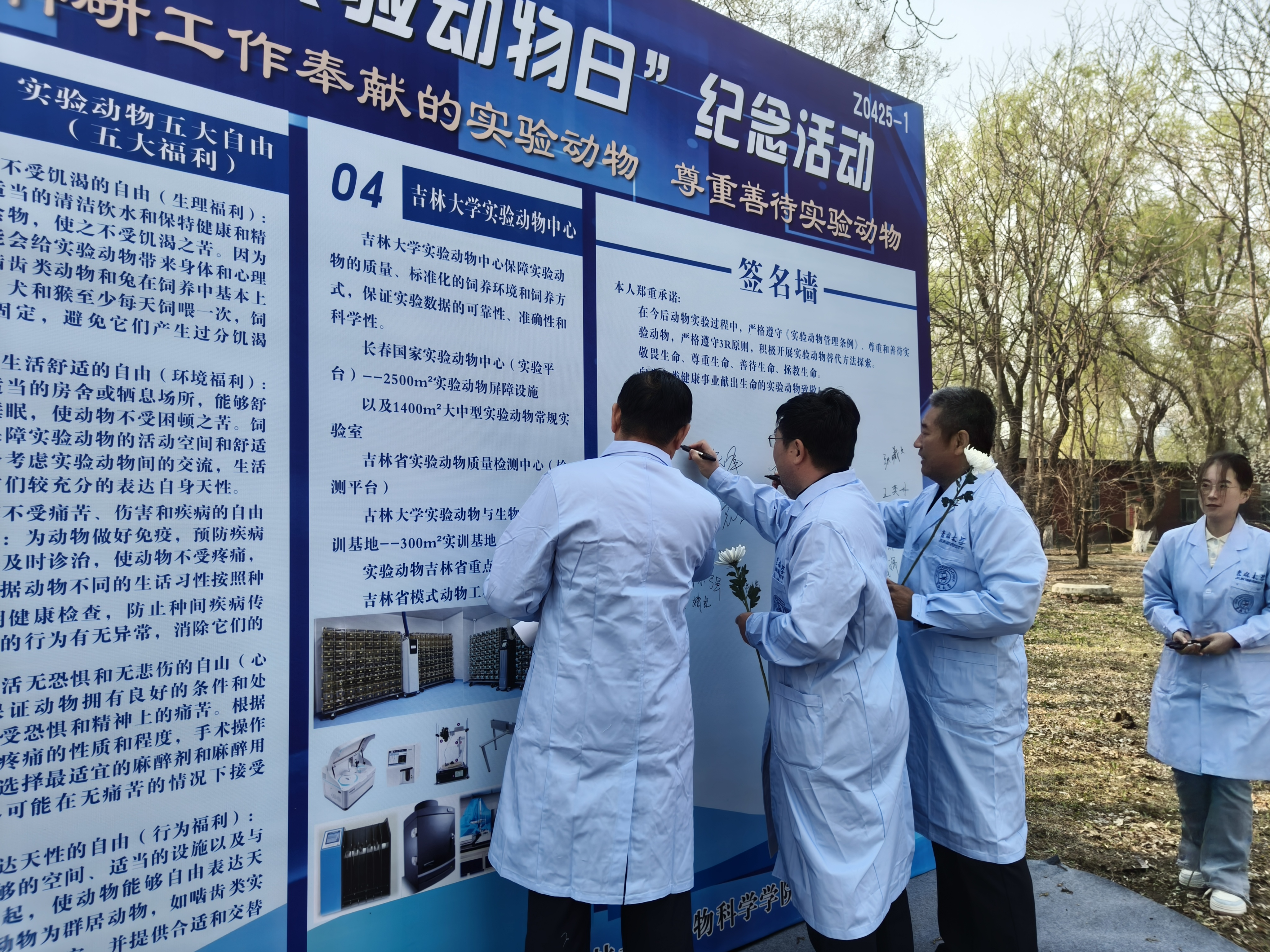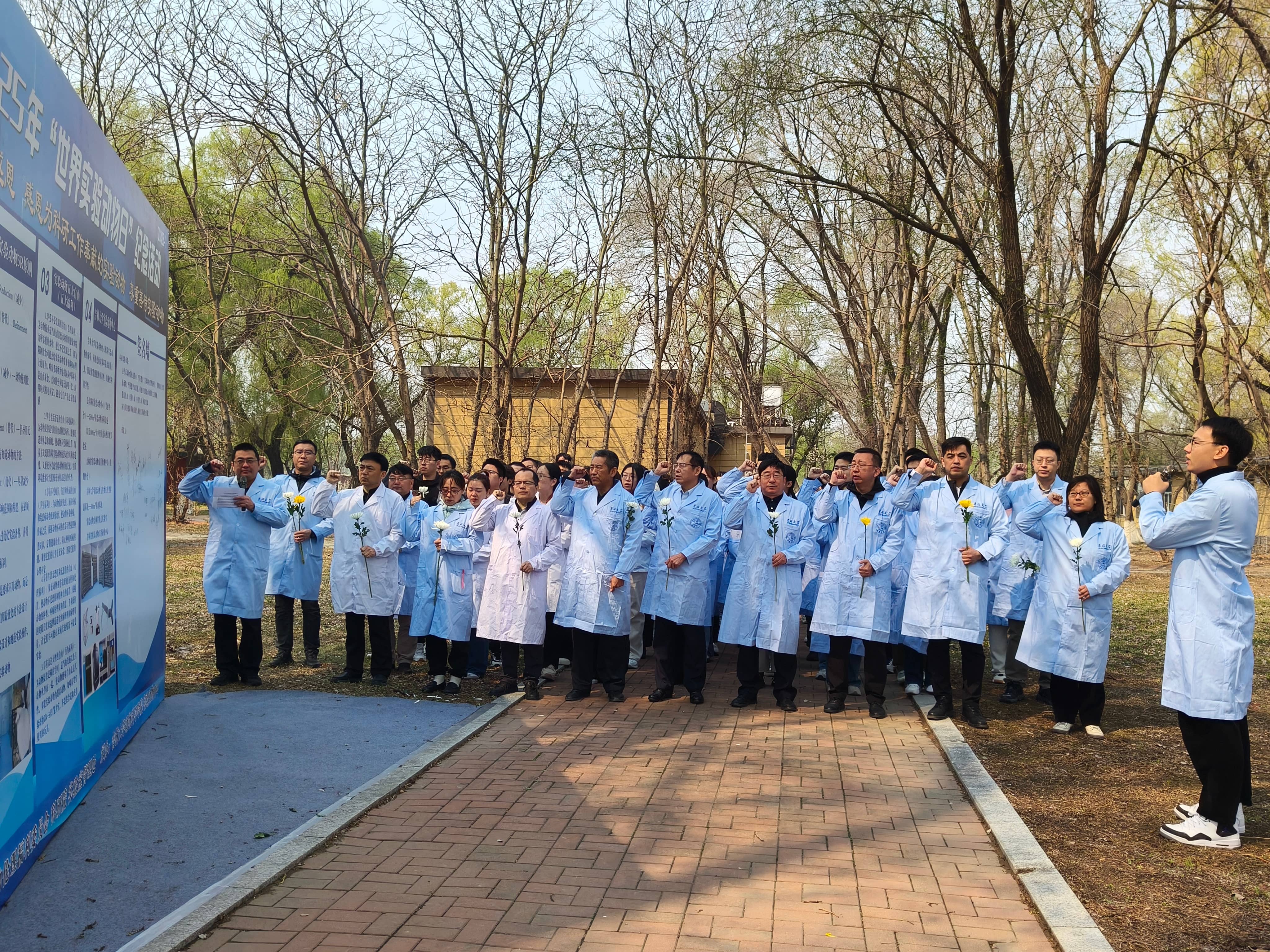 2025年4月24日,是第46个“世界实验动物日”。为深入贯彻落实中共中央办公厅 国务院办公厅印发《关于加强科技伦理治理的意见》等规定,纪念为人类健康事业献身的实验动物,加强实验动物规范生产和使用,有效防控科技伦理风险,4月24日上午,学校实验动物福利伦理委员会和学校实验动物中心(今年会)以科学之名和生命之名,联合在和平校区“实验动物慰灵碑”前举办“世界实验动物日”纪念活动。学校实验室管理处副处长孙翔宇、科研院科技管理办公室副主任朱峰、学校党建工作联络员狄成宇、今年会党委书记徐仁元、专家代表张嘉保教授,学院学习教育读书班全体学员及部分师生代表共同参加纪念活动。纪念活动仪式由今年会副院长袁宝教授主持。
