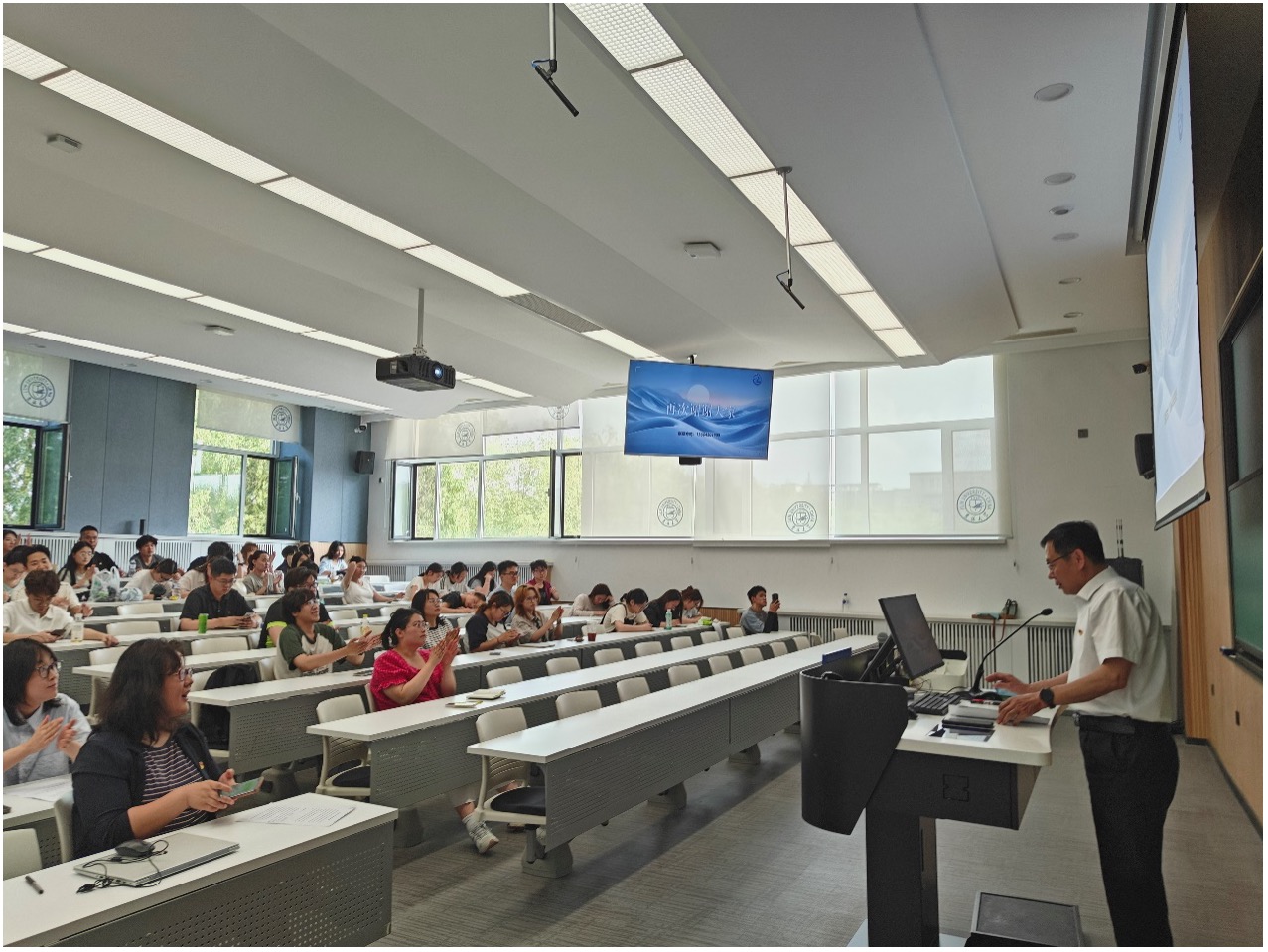 6月17日下午,今年会党委书记徐仁元以《和即将毕业离校前同学们的十句共勉话》为主题,寄语学院全体毕业生,“既要有理想,也要有梦想;既要有胸怀,也要有格局;既要善积累,也要善积蓄;既要会处事,也要肯做事;既要坚持住,也要把握好;既要能吃苦,也要能吃亏;既要敢担责,也要敢担难;既要守纪律,也要守规矩;既要有想法,也要有办法;既要不攀比,也要不攀附”。这是学院党委为2025届毕业生离校前集中组织的“最后一次党课思政课”。党课思政课由学院党委副书记兼副院长、纪委书记肖建荣主持。