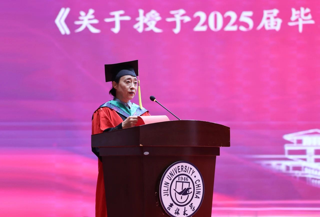 学院学位学科评定分委会主席逄大欣宣读了《关于授予2025届毕业生博士学位、硕士学位和学士学位的决定》,主礼教授孙博兴、姜昊、张永宏、郝林琳分别为学院125名圆满完成本硕博学业的毕业生拨穗正冠并颁发学位证书。
