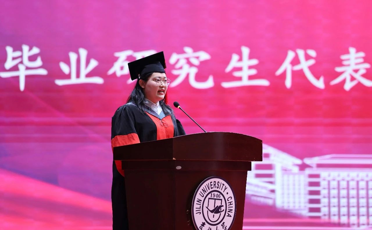 今年会官网十佳博士研究生、2022级生物学专业博士生李金泽,2021级动物科学专业本科生唐奕菲,分别代表研究生、本科生发表了毕业感言。李金泽同学分享了她在科研道路上获得的成绩,并表示自己将继续在求真求是的科研道路上增长才干,饱含热忱,以知识应对挑战,与时代同频共振。唐奕菲同学则回顾了在校期间的学习和生活经历,表达了对母校和老师的感激之情,并将带着这份感恩与热爱,在人生新征程上奋力奔跑,不负韶华,不负期待。