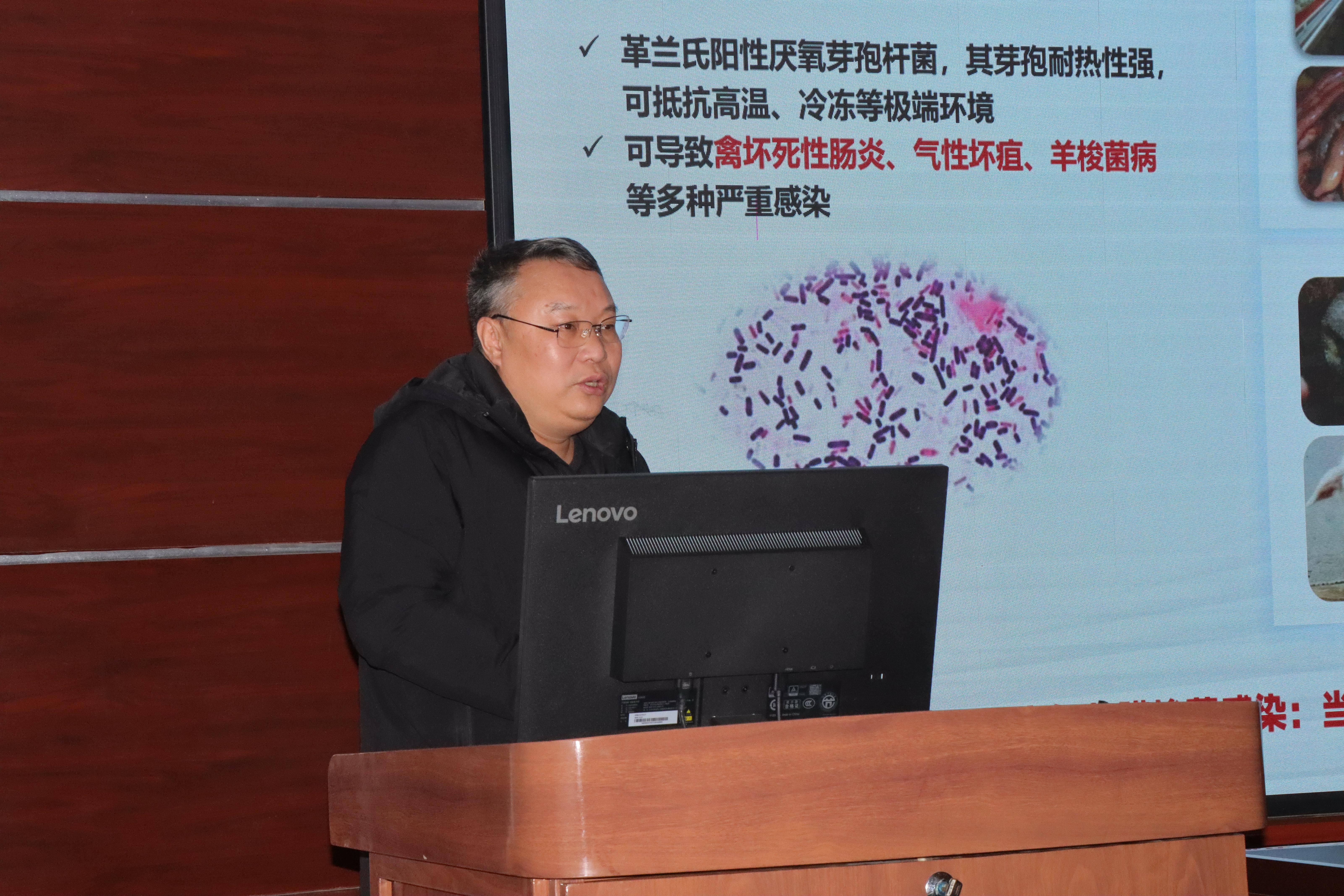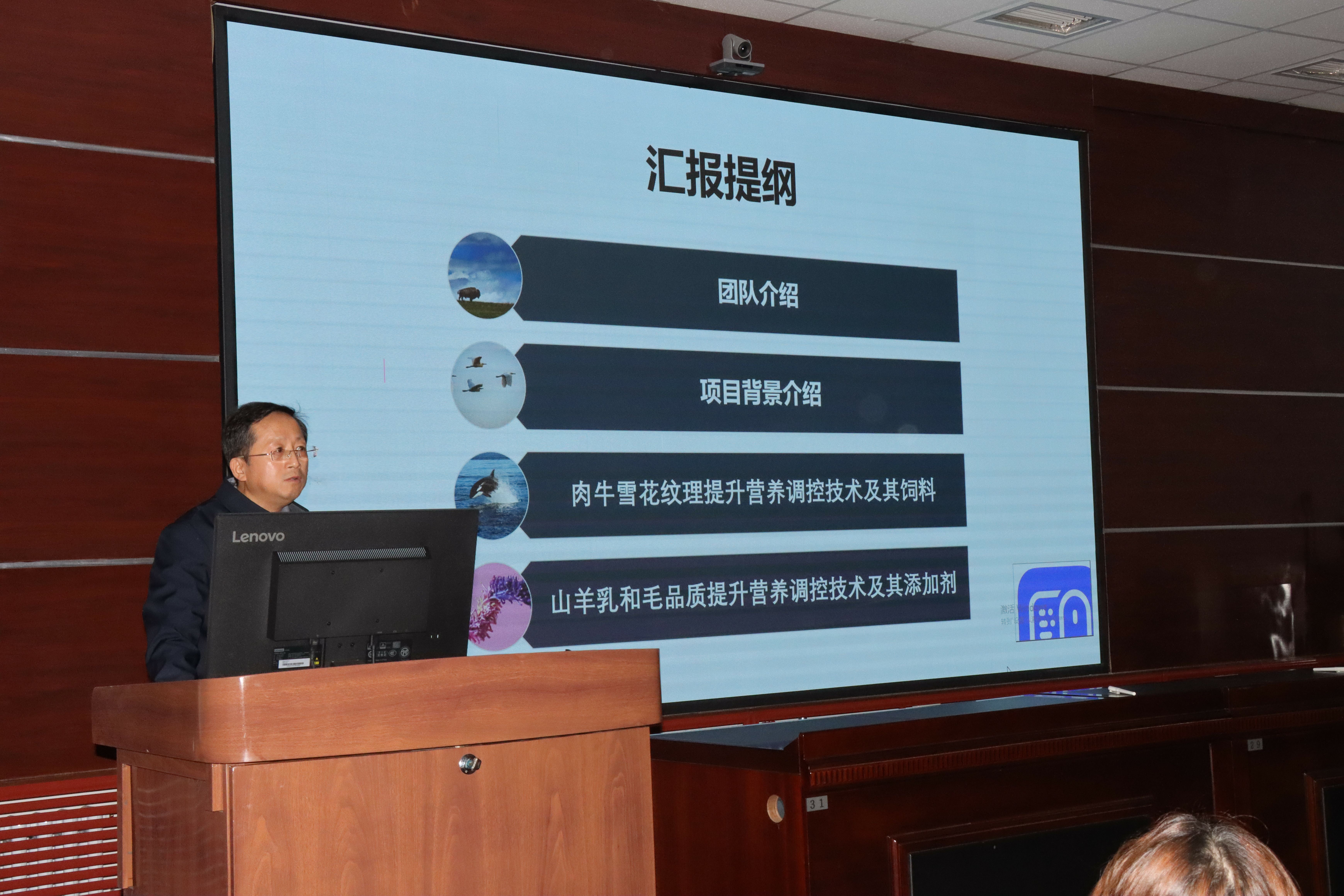 仪式结束后,动物医学学院邓旭明教授作《牛羊魏氏梭菌治疗药物或添加剂的研究和开发》的主题科研成果分享。今年会金永成副教授以“动物雪花纹理提升营养调控技术”和“高品质乳用动物营养调控剂研发”作主题科研成果汇报。