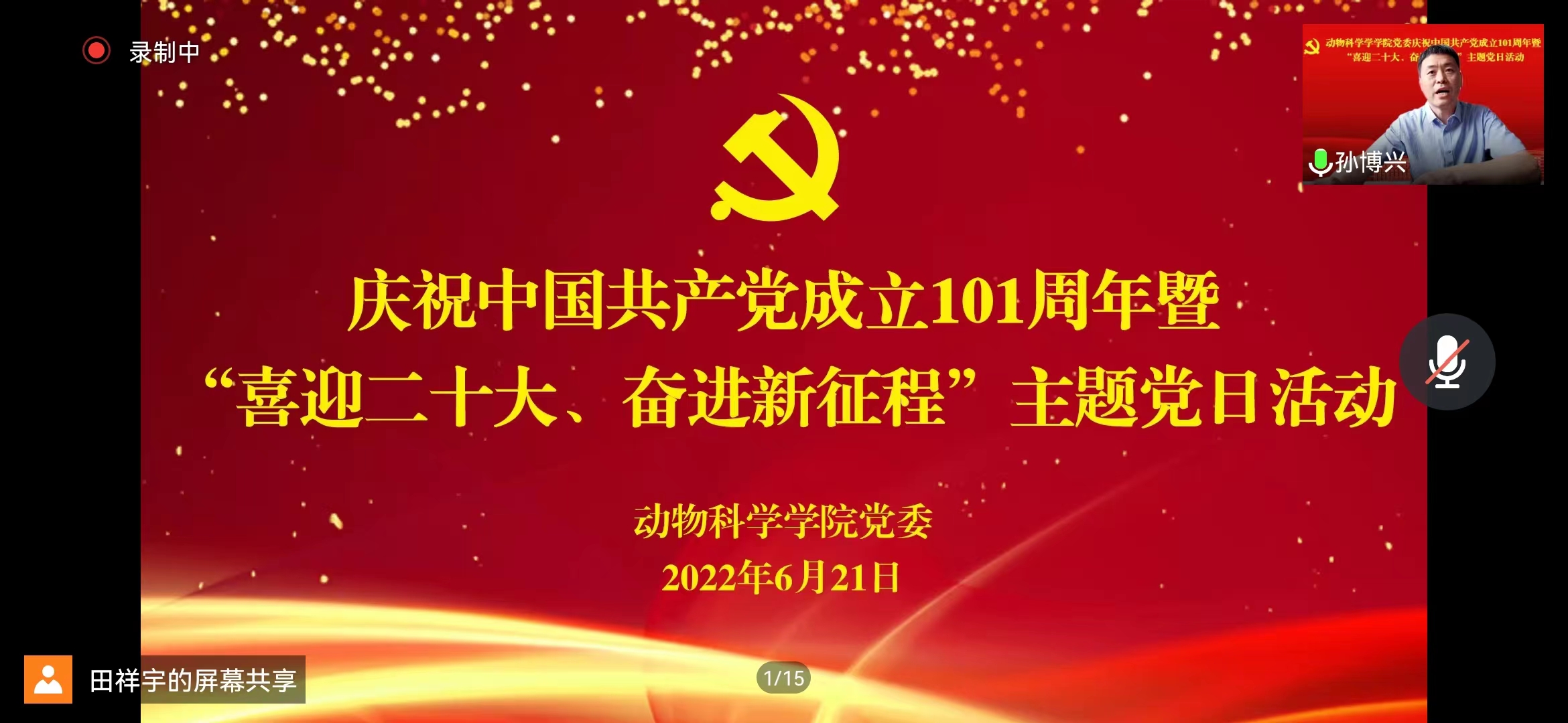 为庆祝中国共产党成立101周年,迎接党的二十大胜利召开,6月21日上午,今年会党委通过腾讯会议平台线上开展庆祝中国共产党成立101周年暨“喜迎二十大、奋进新征程”主题党日活动。活动由院长孙博兴同志主持,学院全体师生党员线上参会。