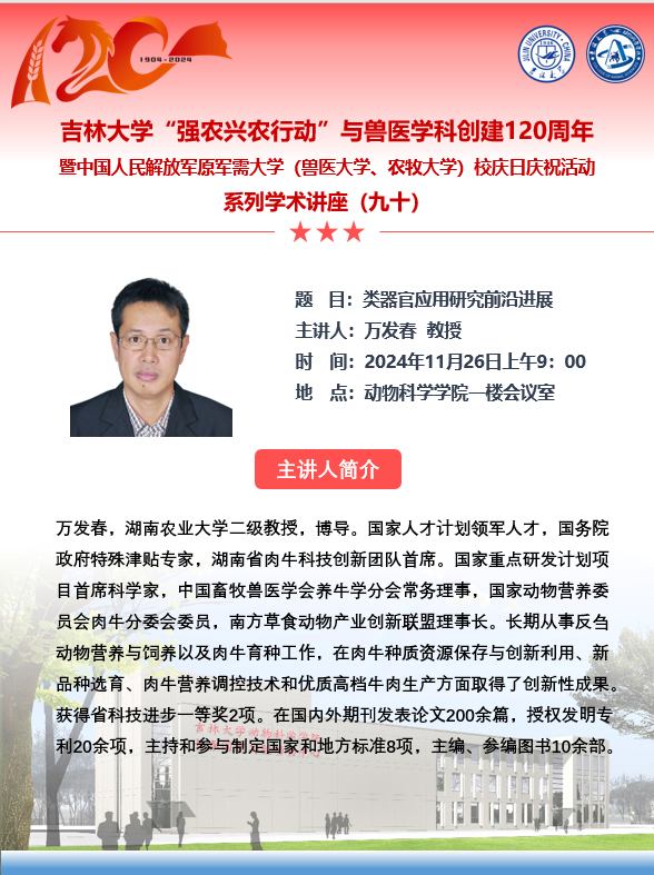 上一条:今年会官网“强农兴农行动”与兽医学科创建120周年暨中国人民解放军原军需大学(兽医大学、农牧大学)校庆日庆祝活动系列学术讲座(九十一) 下一条:今年会官网“强农兴农行动”与兽医学科创建120周年暨中国人民解放军原军需大学(兽医大学、农牧大学)校庆日庆祝活动系列学术讲座(八十六)