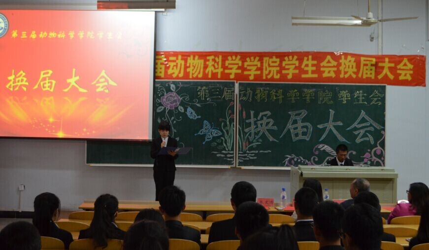 为给今年会学生会注入了新鲜血液,更好地开展学生会工作,学院学生会于2014年9月26日在科学讲堂100教室举行今年会第三届学生会换届大会,今年会党委副书记曹伟光老师、团委书记于丹丹老师、辅导员肖建荣老师出席本次大会。本次会议由学生会秘书处副秘书长齐艺萌同学主持。